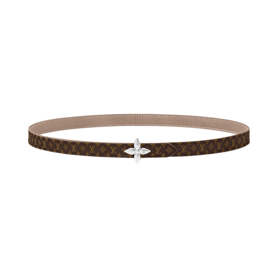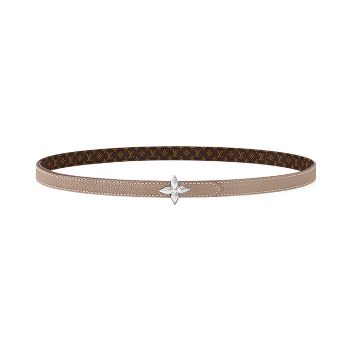 (W) Louis Vuitton LV Mini Flowergram 15mm Reversible Belt Monogram Tourtelle Grey