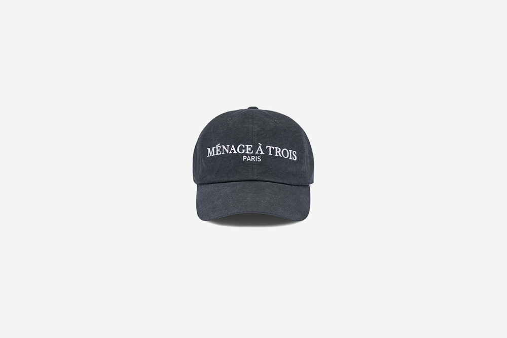 MENAGE BLACK CAP 6-panel hat Embroidered eyelets Embroidery graphic on front and back Adjustable backstrap Message TO CELEBRATE THE LOVE. THE BALANCE OF 3 Three Realms Tricolon Three Axioms 3 - 균형, 안정성, 성장, 신성함
