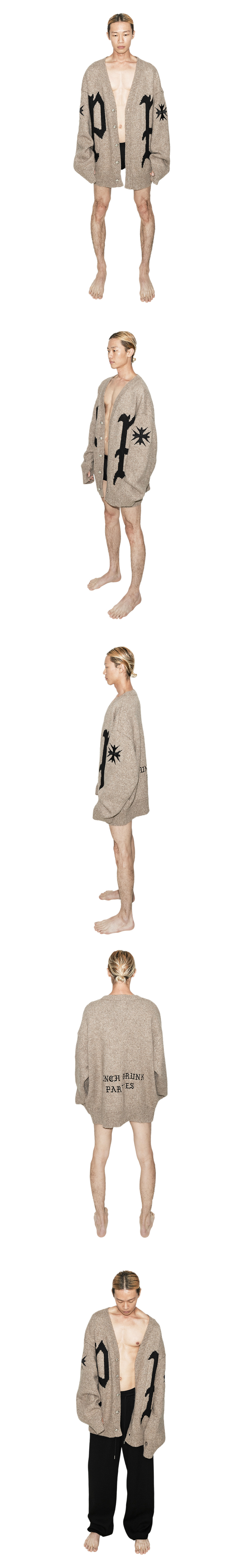 울 혼용의 니트 가디건 제품입니다. 자수와 원단 짜임으로 다양하게 표현된 그래픽이 특징이며 자체제작된 버튼으로 마무리 됩니다. - Wool 8%, Acrylic 20%, Nylon 15%, Poly 57% - Oversized Silhouette Size Guide Male / 183cm, 65kg, Size FREE