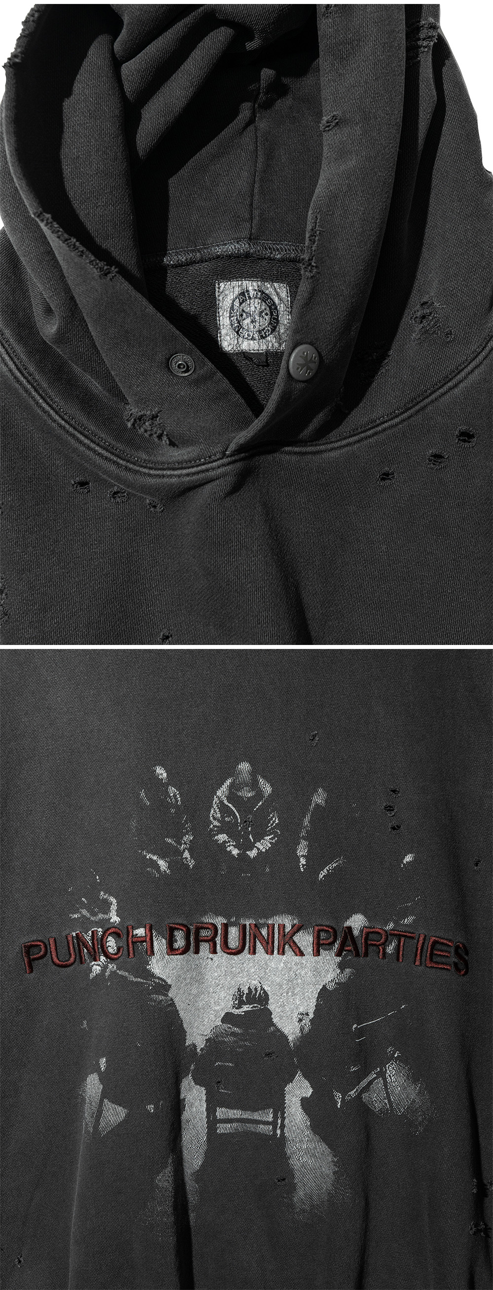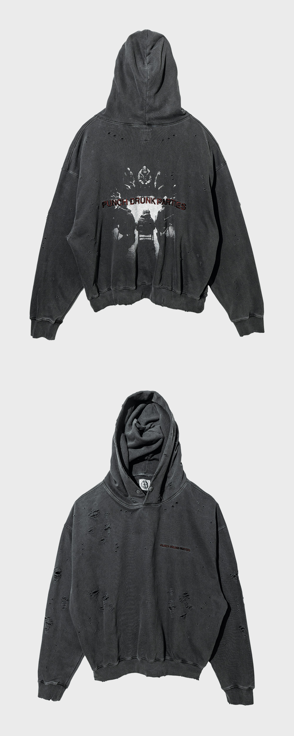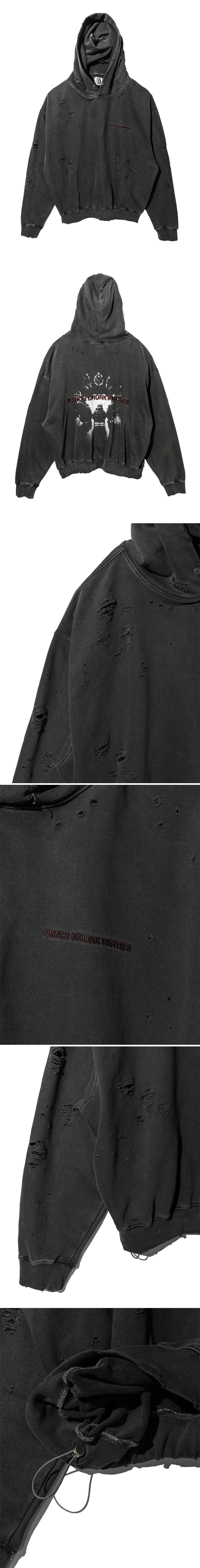 펀치 드렁크 파티즈 다모임 가먼트 다이드 후드 차콜