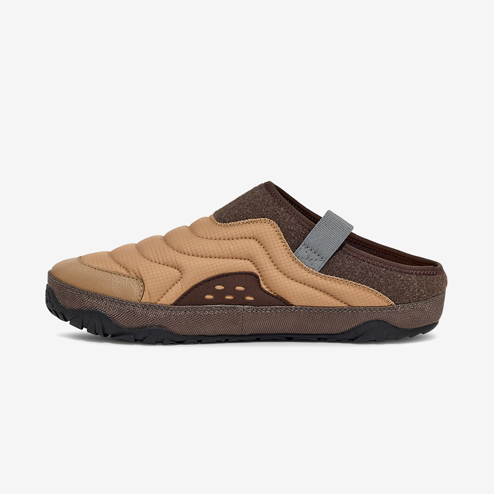 변함없는 테바 베스트셀러 리엠버 터레인을 소개합니다. 착용이 간편한 뮬 스타일의 패딩 슈즈로 추운 실내나 캠핑장에서 신기 적합 합니다. 아웃도어 용품에서 영감받은 견고한 립스탑 외피를 사용해 쉽게 찢어지지 않으며, 발끝의 토갭이 외부 충격으로부터 발을 안전하게 보호합니다. 가방이나 고리에 스트랩을 걸어 가볍게 챙겨 떠나보세요.