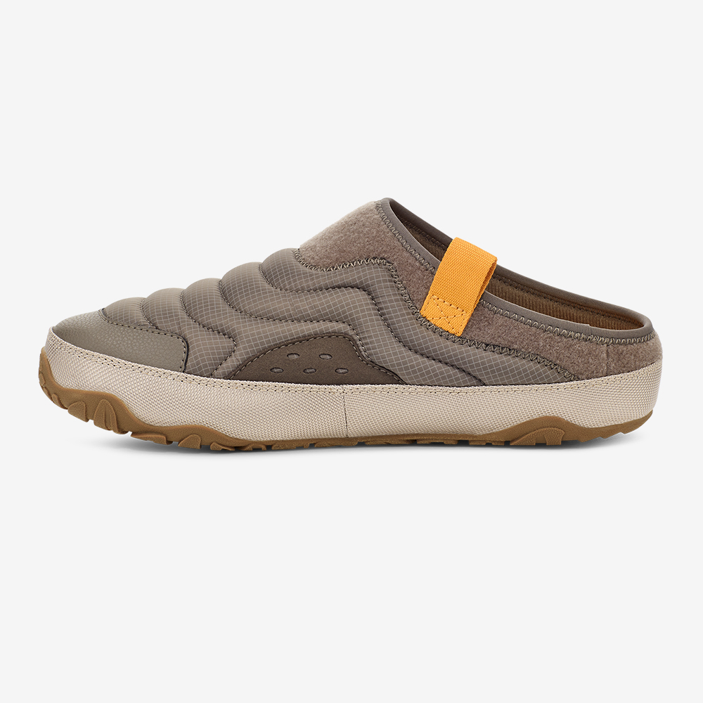 변함없는 테바 베스트셀러 리엠버 터레인을 소개합니다. 착용이 간편한 뮬 스타일의 패딩 슈즈로 추운 실내나 캠핑장에서 신기 적합 합니다. 아웃도어 용품에서 영감받은 견고한 립스탑 외피를 사용해 쉽게 찢어지지 않으며, 발끝의 토갭이 외부 충격으로부터 발을 안전하게 보호합니다. 가방이나 고리에 스트랩을 걸어 가볍게 챙겨 떠나보세요.