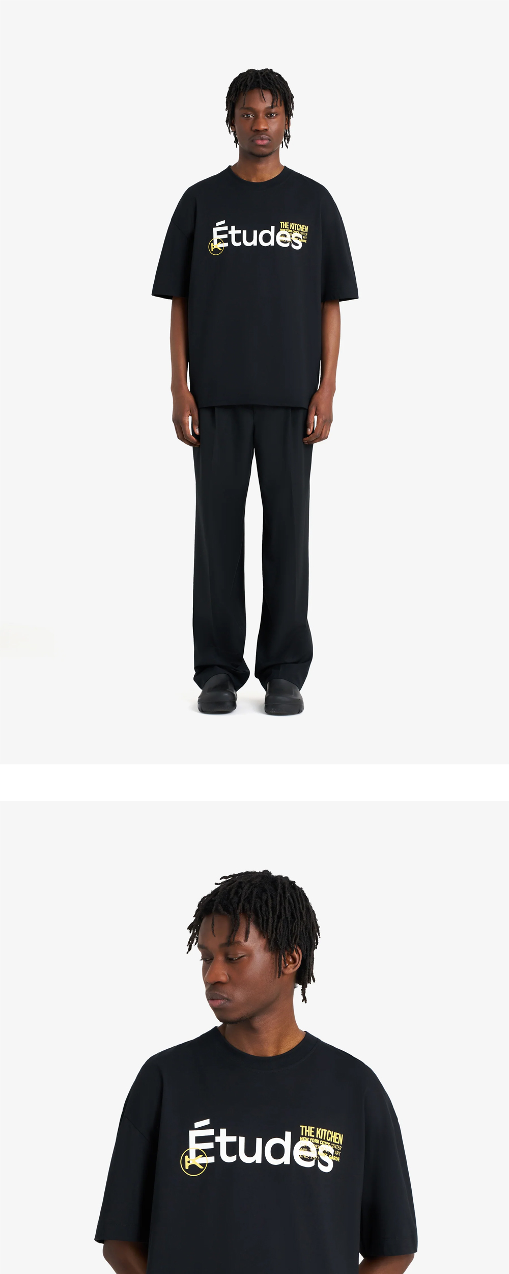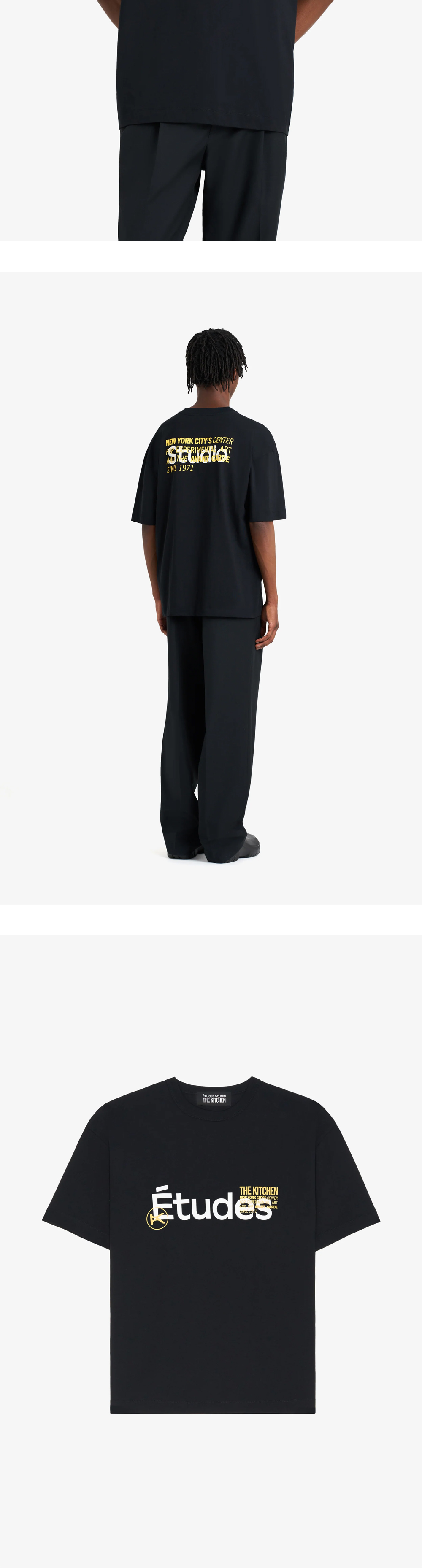 층층이 쌓아 올린 프린팅과 넉넉한 실루엣이 매력적인 에뛰드 스튜디오의 릴렉스 티셔츠입니다. - Études Studio와 The Kitchen의 콜라보 제품 - 오버사이즈 핏 - 100% 오가닉 코튼 소재 - 전/후면 로고 및 그래픽 스크린 프린팅 - 전면 좌측 하단 E 로고 자수