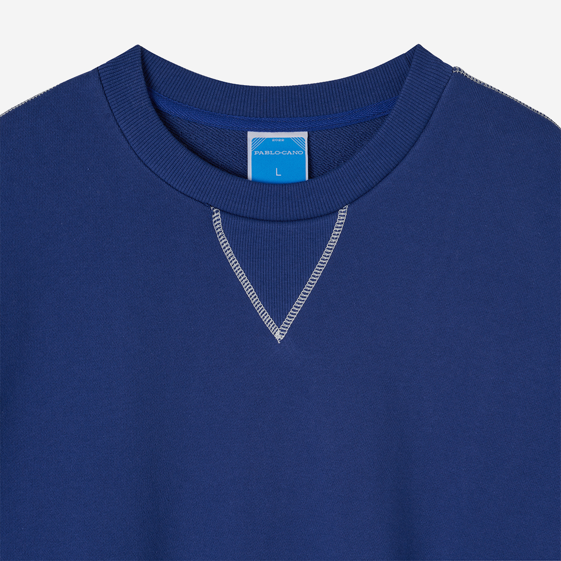 PABLO CANO NAVY SWEATSHIRT White stitches Screen printed graphics Info 완성된 스웻셔츠에 수성 핸드 실크스크린 날염으로 시간이 지남에 따라 스웻셔츠와 함께 그래픽도 함께 낡아갑니다.