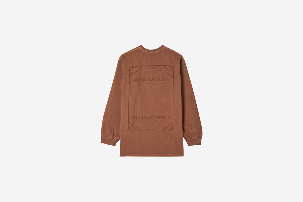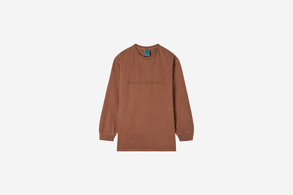 PABLO CANO BROWN LOOSE LS TSHIRT Screen printed graphics *Pablocano Specical Color* Info 30수 2P 원사 두 가닥으로 만든 편직물을 활용하여 무겁게 완성된 흰색의 티셔츠에 파블로카노가 선택한 색을 가먼트다잉 기법으로 여러 차례 염색하여 하나의 색을 고릅니다.선택된 색으로 염색된 티셔츠의 곳곳에 빈티지한 느낌이 머뭅니다. 수성 핸드 실크스크린 날염으로 시간이 지남에 따라 티셔츠와 함께 그래픽도 함께 낡아갑니다.