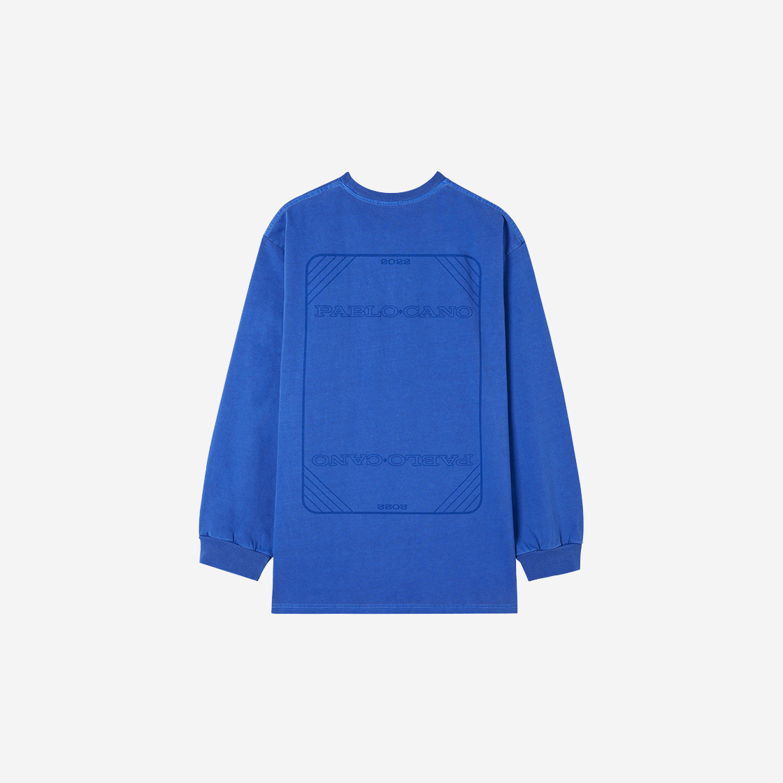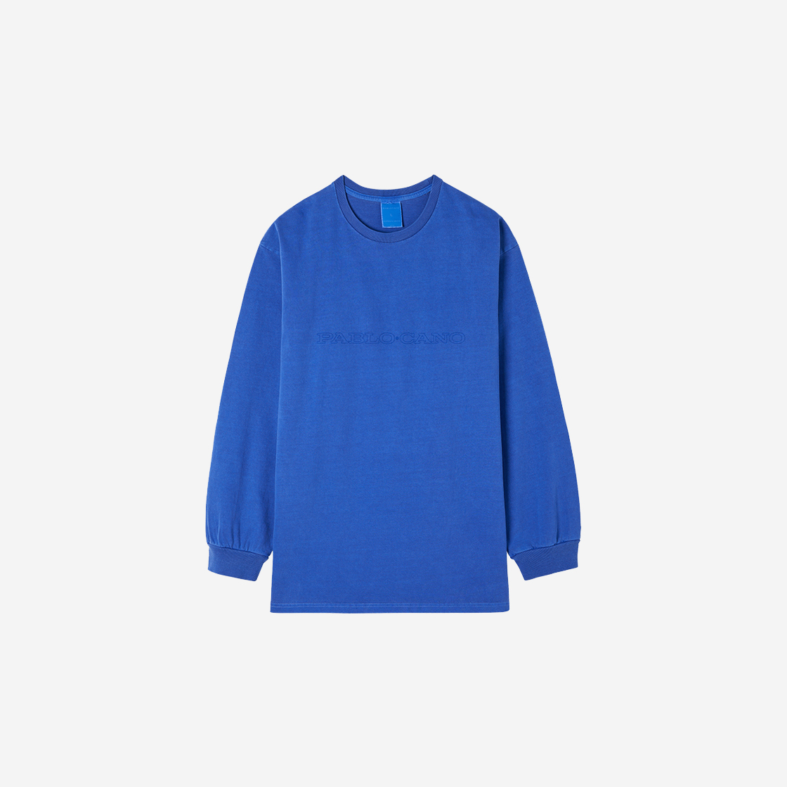 PABLO CANO N.BLUE LOOSE LS TSHIRT Screen printed graphics *Pablocano Specical Color* Info 30수 2P 원사 두 가닥으로 만든 편직물을 활용하여 무겁게 완성된 흰색의 티셔츠에 파블로카노가 선택한 색을 가먼트다잉 기법으로 여러 차례 염색하여 하나의 색을 고릅니다.선택된 색으로 염색된 티셔츠의 곳곳에 빈티지한 느낌이 머뭅니다. 수성 핸드 실크스크린 날염으로 시간이 지남에 따라 티셔츠와 함께 그래픽도 함께 낡아갑니다.