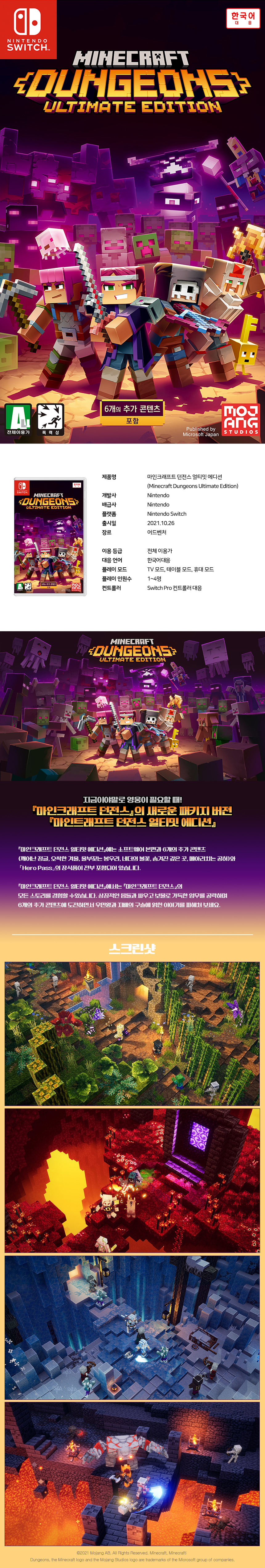 닌텐도 스위치 마인크래프트 던전 얼티밋 에디션