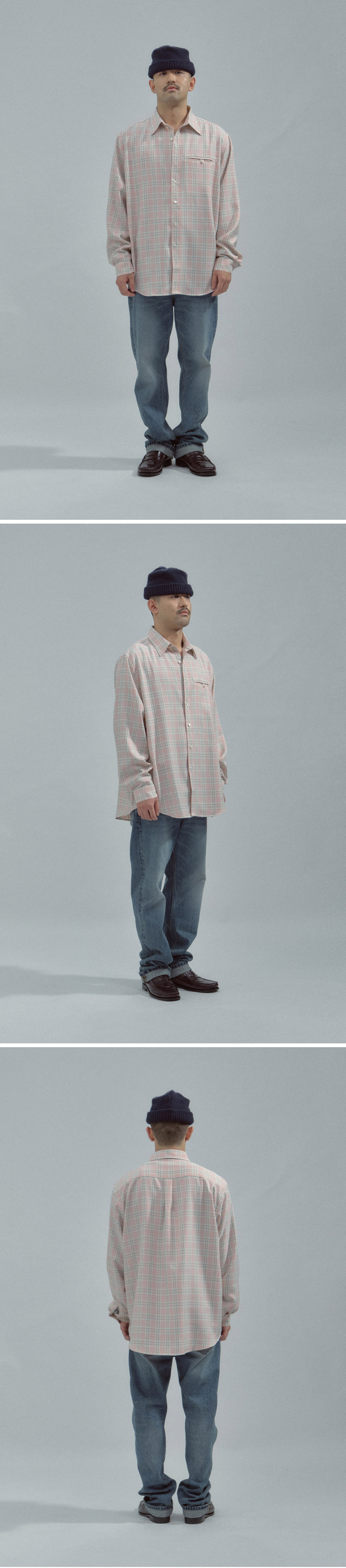 노클 머서 체크 셔츠 핑크