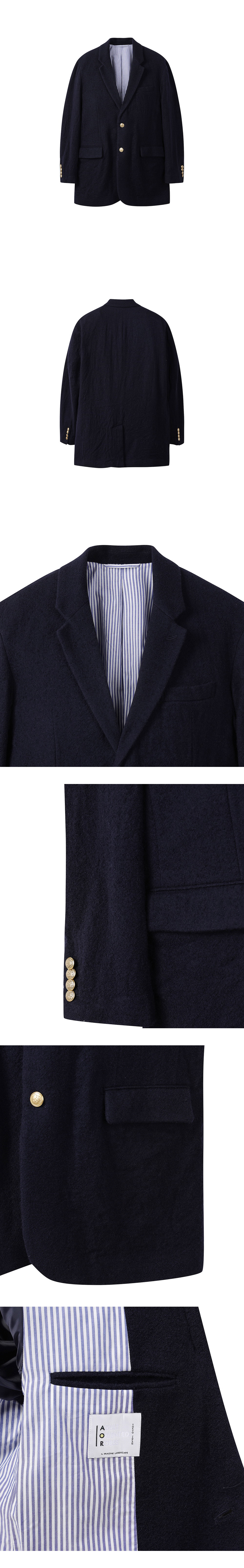 해군의 블레이저 자켓에서 영감을 받아 탄생한 에이오알 멀리건 자켓입니다. - 축융 울 소재의 겉감 - 워싱 및 주름 가공 처리 - 전면 및 소매의 금속 리얼 버튼 - 스트라이프 안감 및 내부 포켓