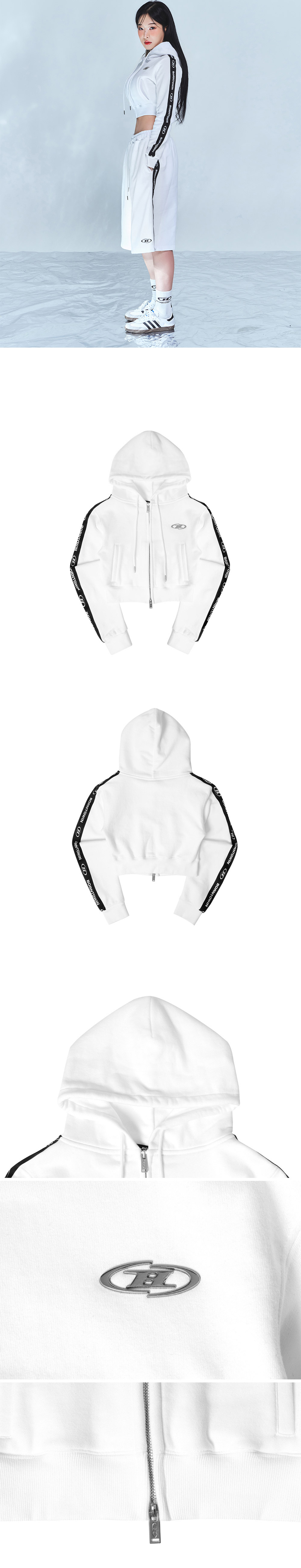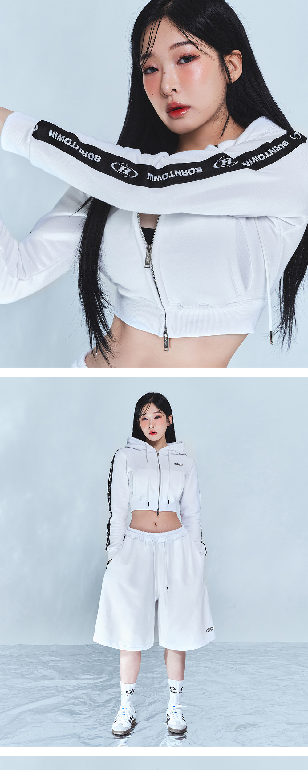 본투윈 크롬 B 블랙 라인 크롭 집업 후드 화이트