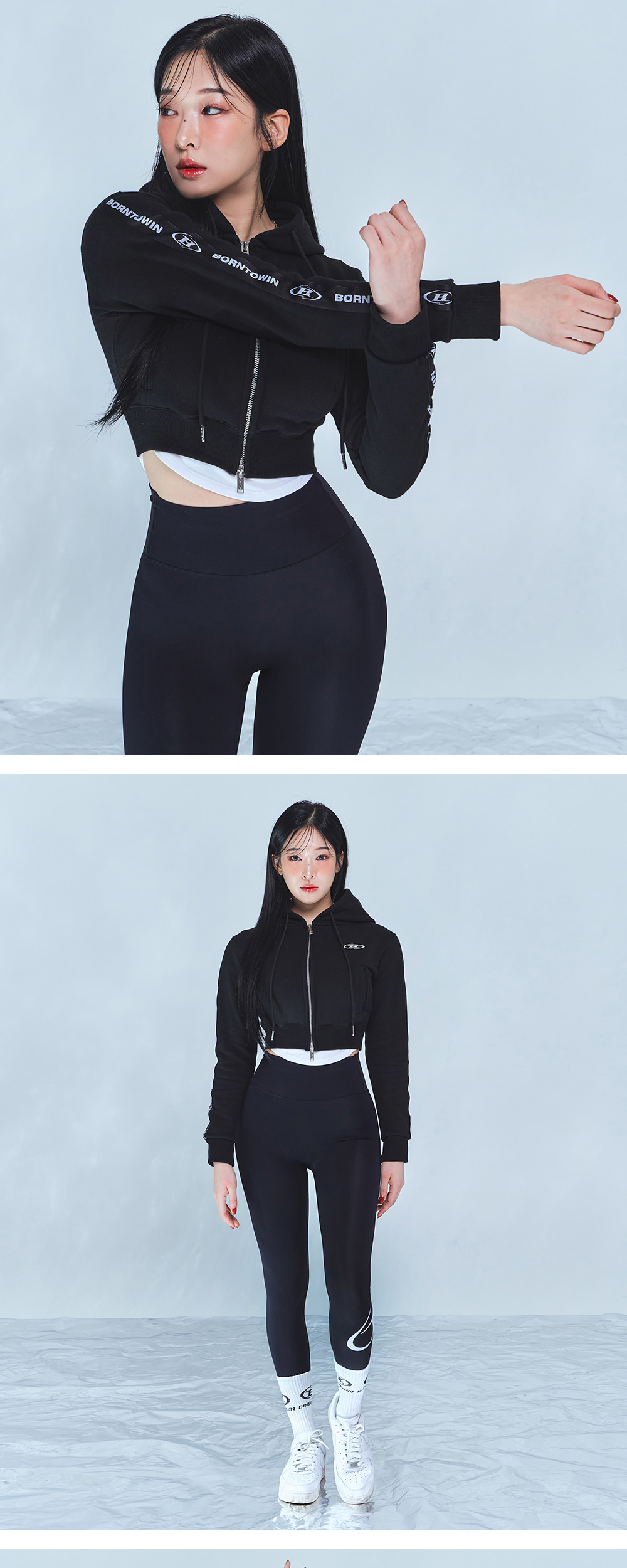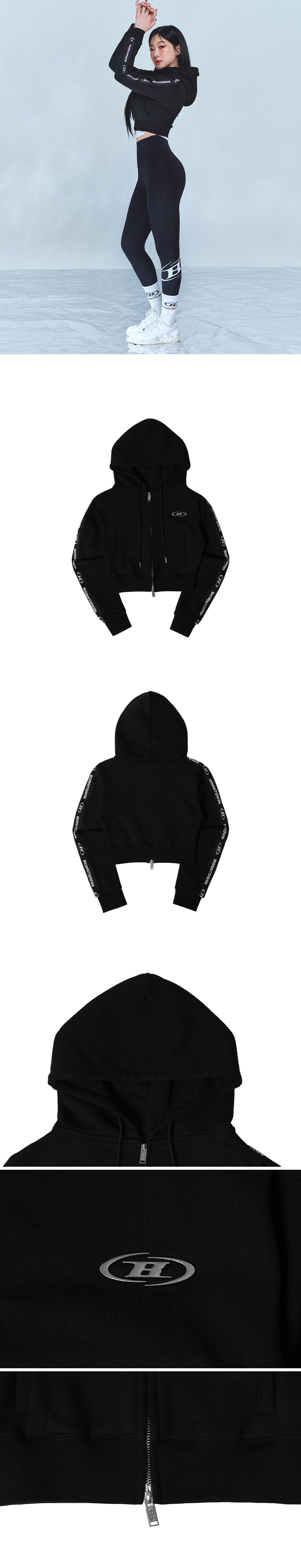본투윈 크롬 B 블랙 라인 크롭 집업 후드 블랙