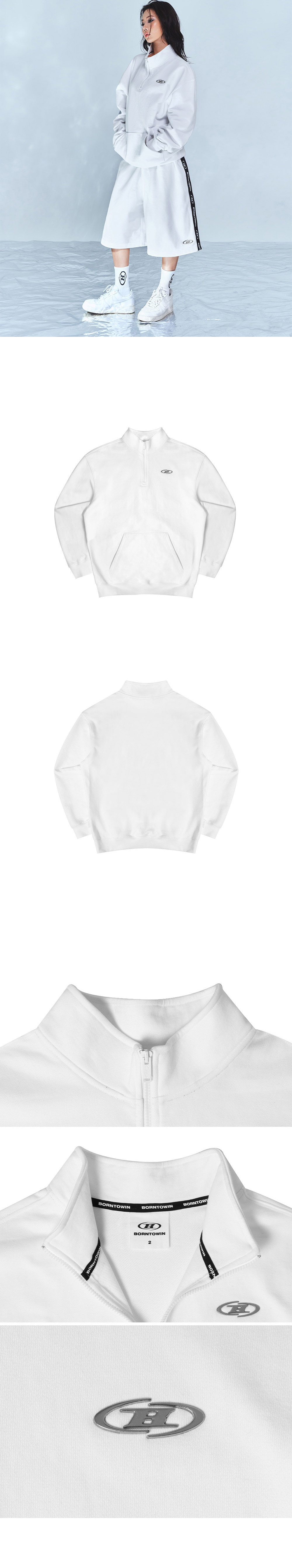 본투윈 크롬 B 하프 집업 스웨트셔츠 화이트