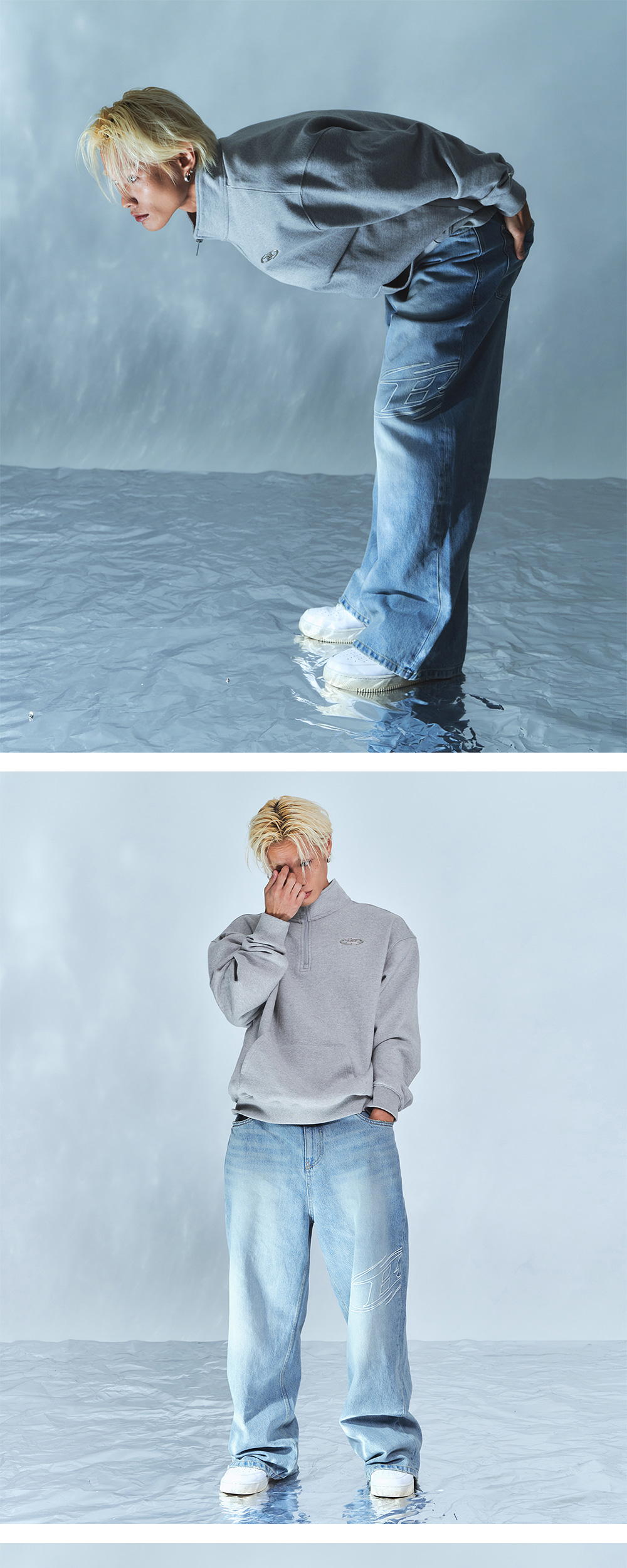 본투윈 스트로크 B 워시드 와이드 데님 팬츠 라이트 블루