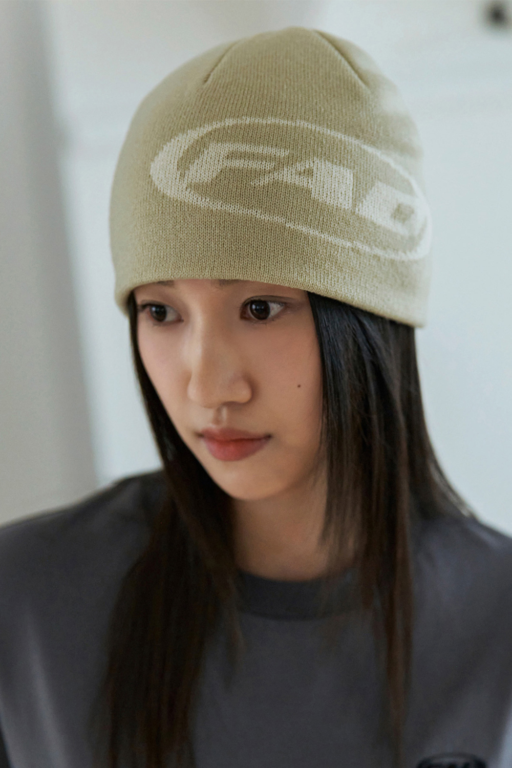 에프에이디 로고 숏 비니 카키