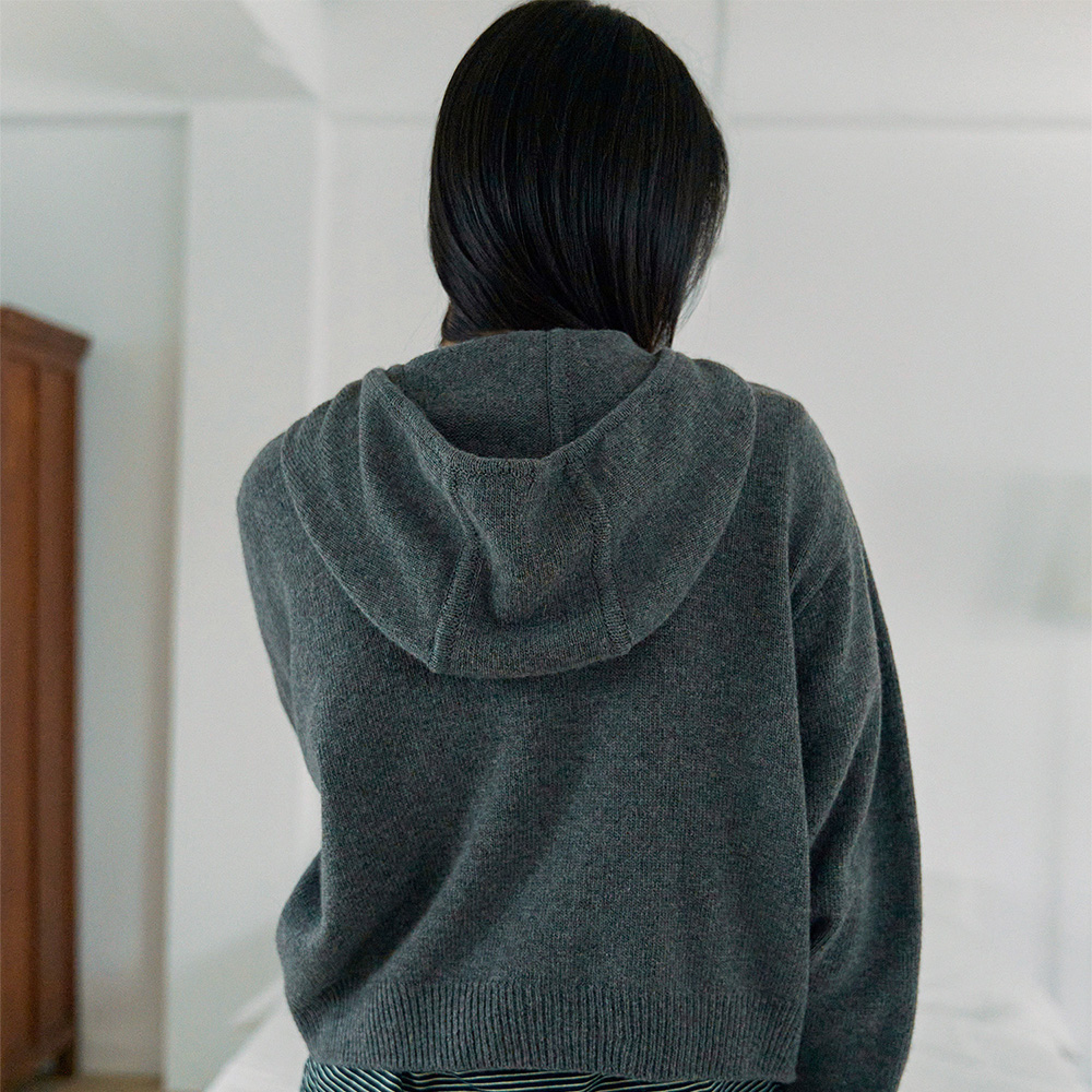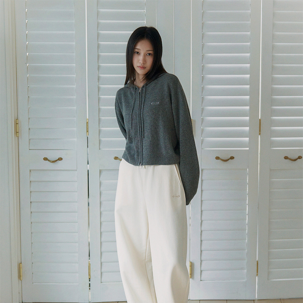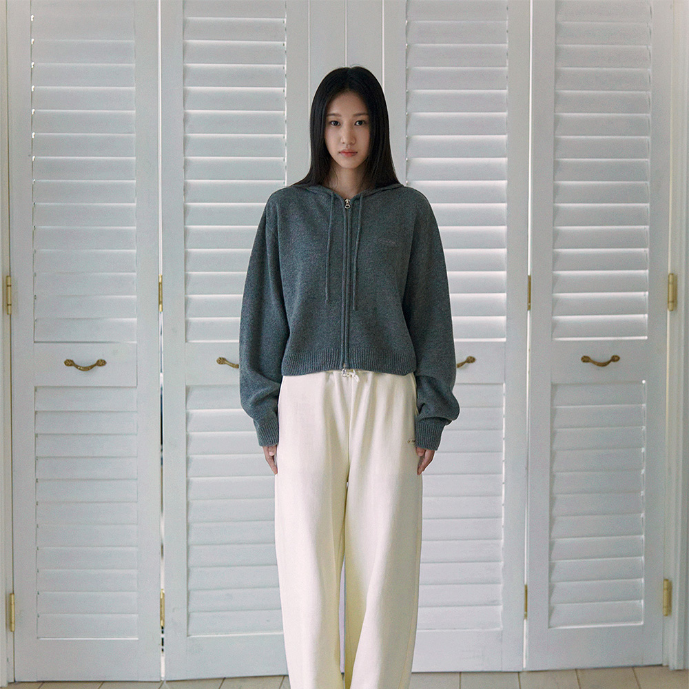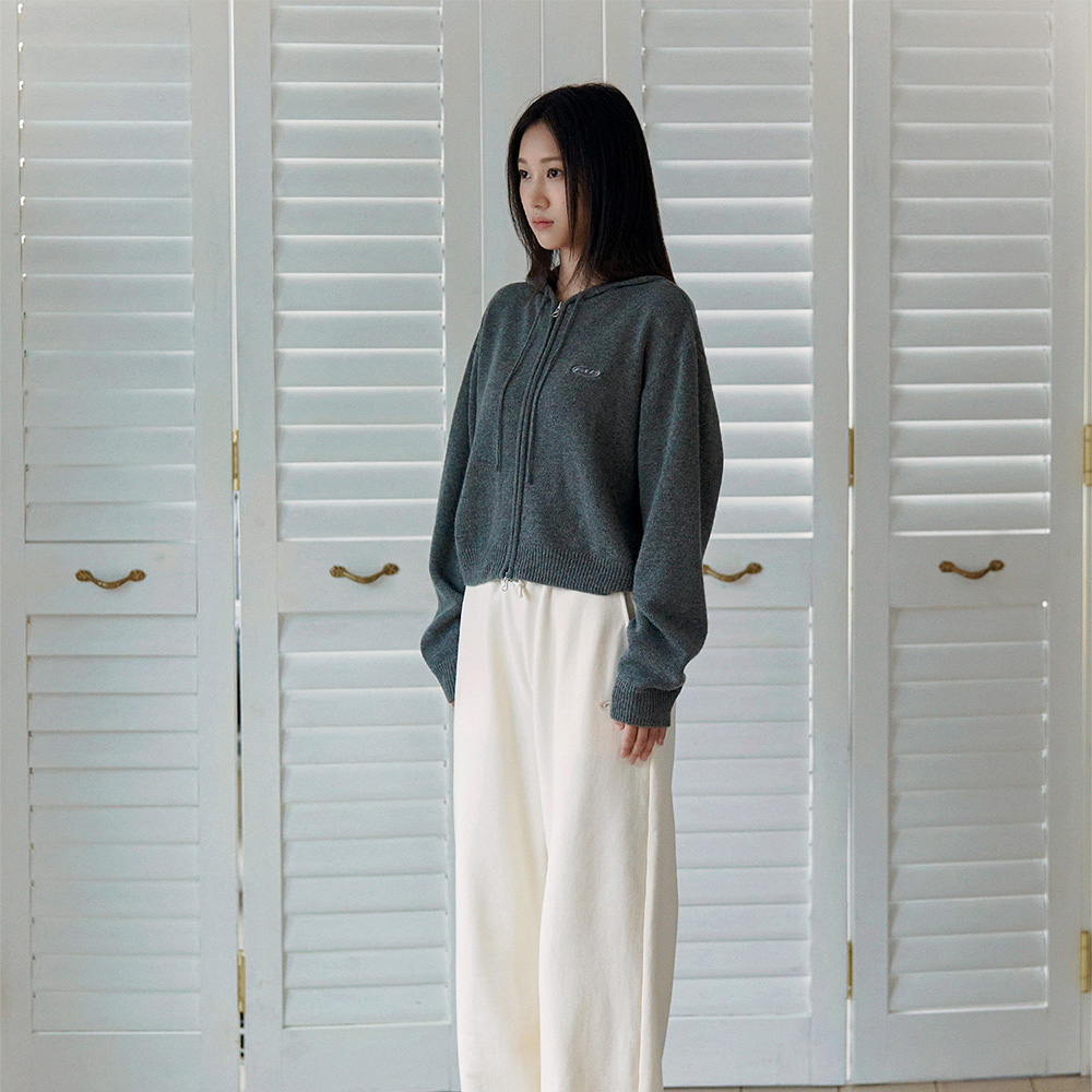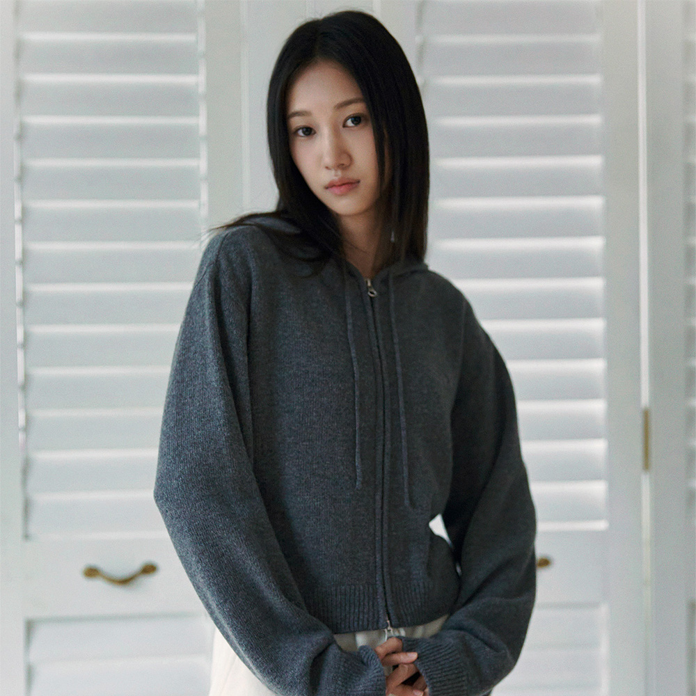 에프에이디 니트 크롭 후드 집업 차콜