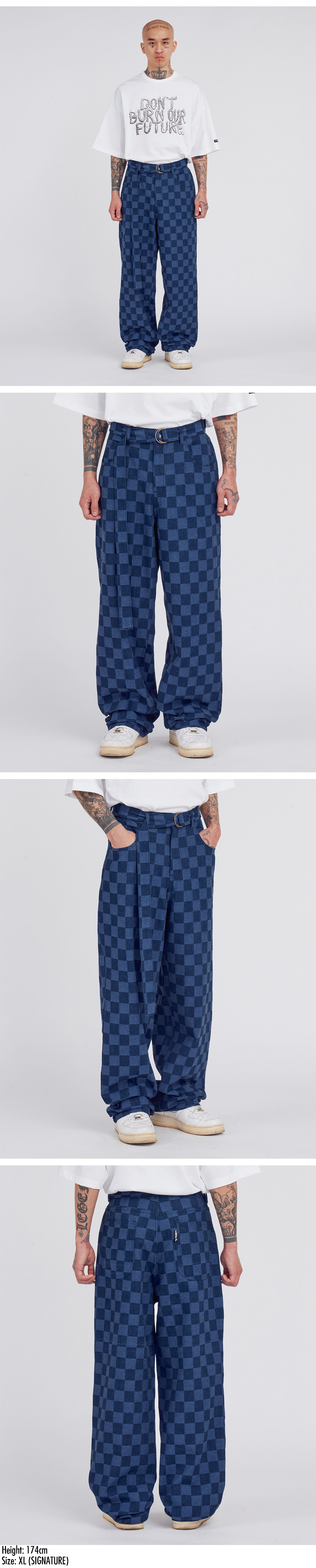 아조바이아조 체커보드 데님 팬츠 블루