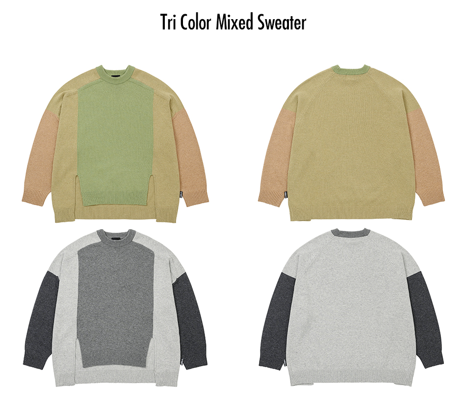 AJOBYAJO Tri Color Mixed Sweater Mustard