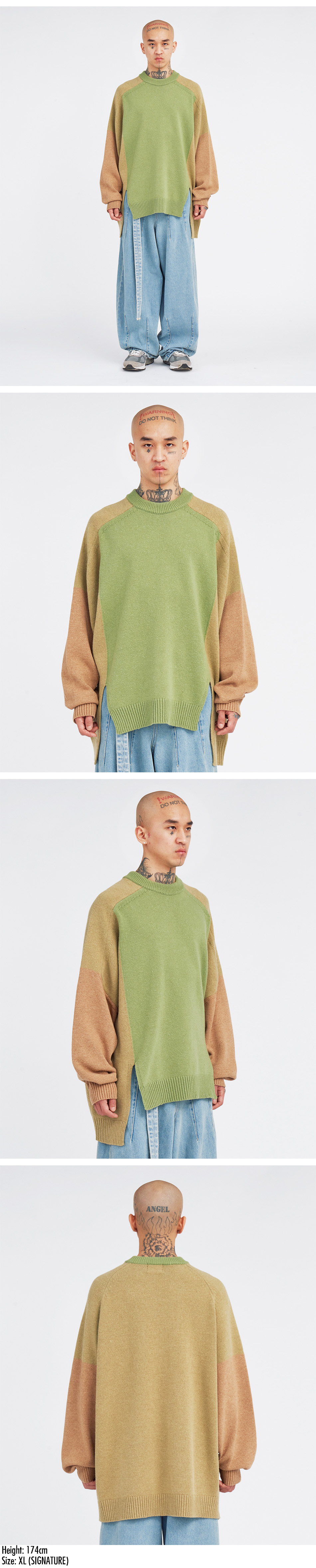 아조바이아조 트리 컬러 믹스드 스웨터 머스타드