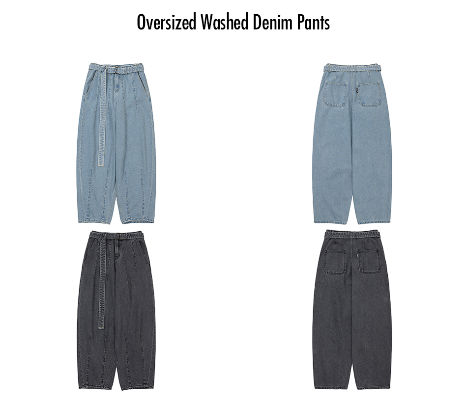 AJOBYAJO Oversized Washed Denim Pants Sky Blue