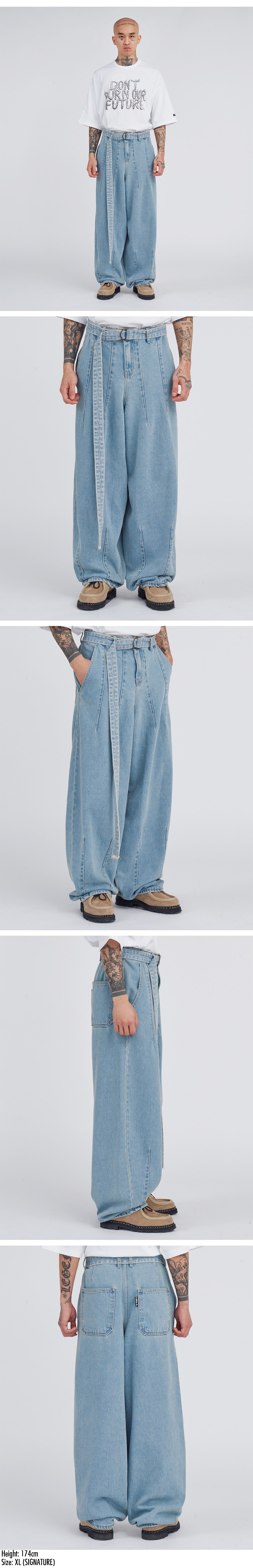 아조바이아조 오버사이즈 워시드 데님 팬츠 스카이 블루