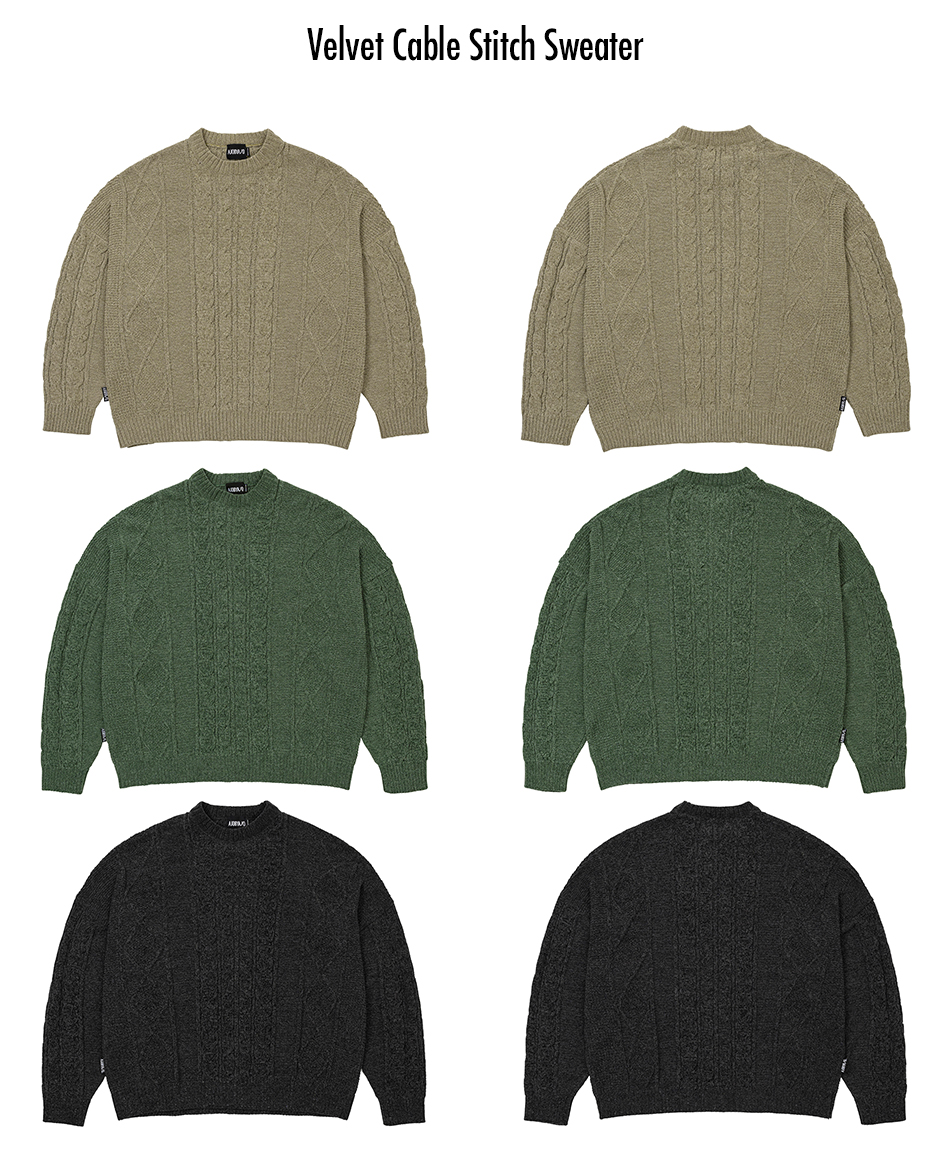 AJOBYAJO Velvet Cable Stitch Sweater Beige