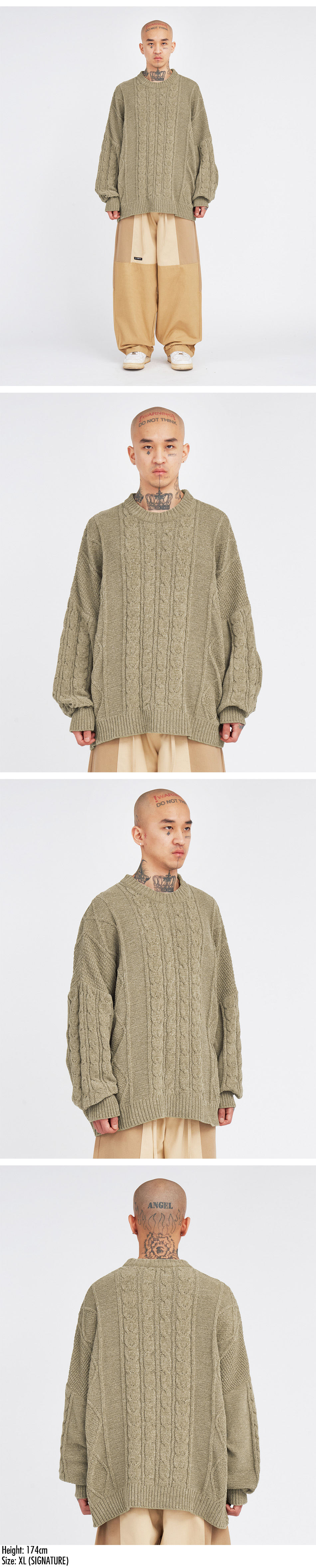 아조바이아조 벨벳 케이블 스티치 스웨터 베이지