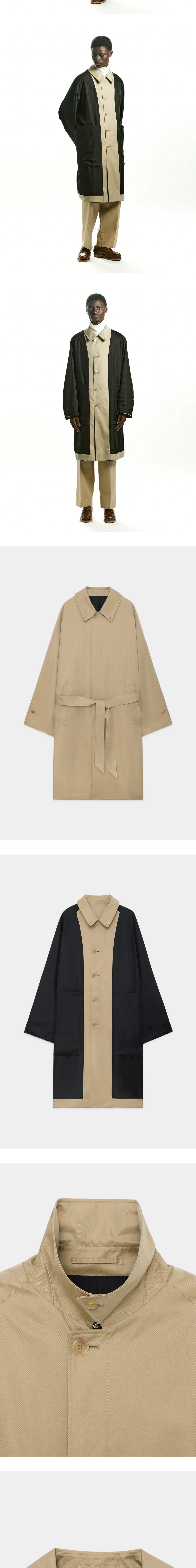 리버시블 디자인으로 원하는 무드를 연출할 수 있는 마카웨어의 리버시블 싱글 트렌치 코트입니다. - 무릎 정도의 적당한 기장감 - 가벼운 발수 기능이 있는 기자 코튼 개버딘 겉감 - 리버시블 실크 안감 - 양쪽 면 모두 버튼 존재 - 넥 후크 디테일