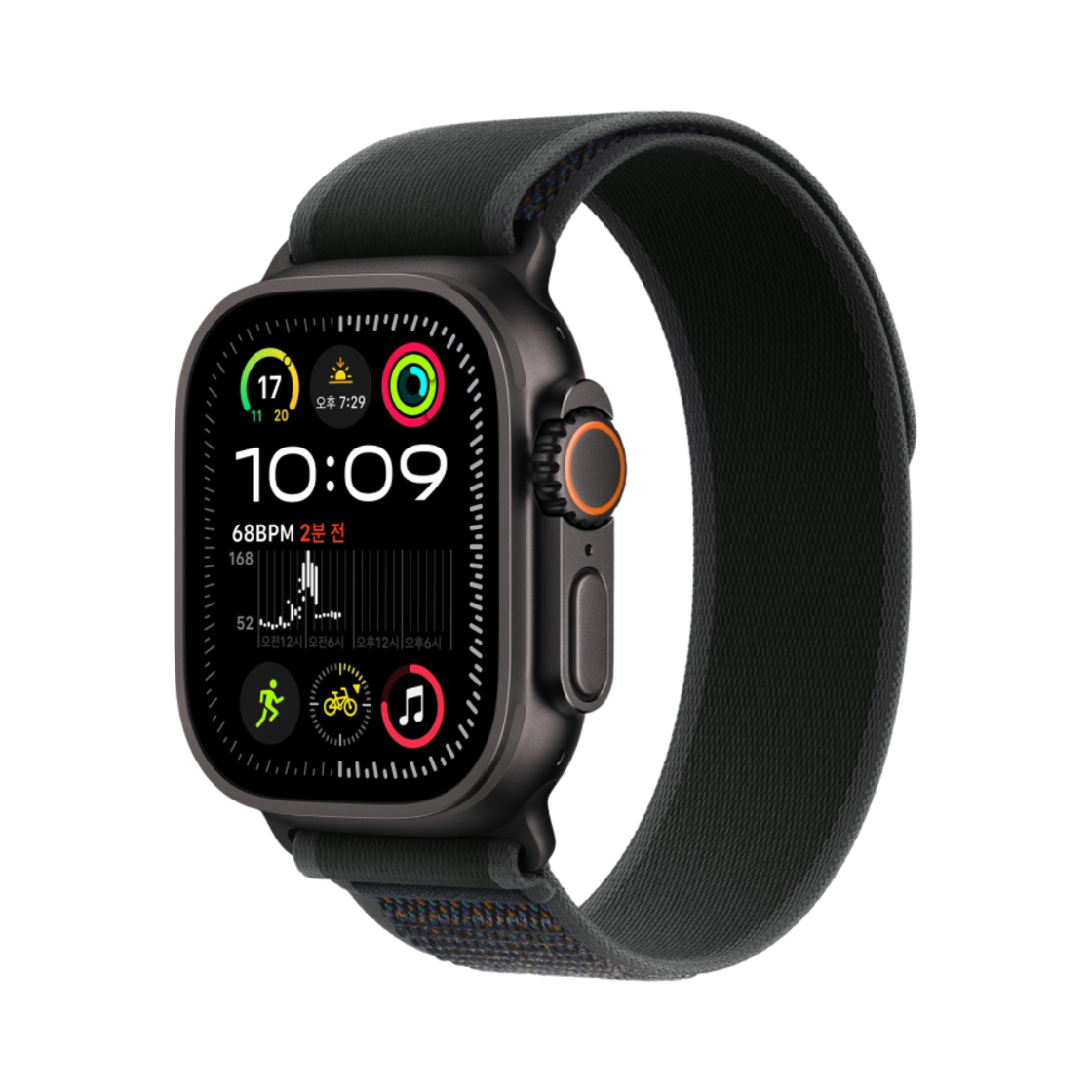 애플 워치 울트라 2 49mm GPS 셀룰러 티타늄 케이스 트레일 루프 M/L 블랙 (국내 정식 발매 제품)