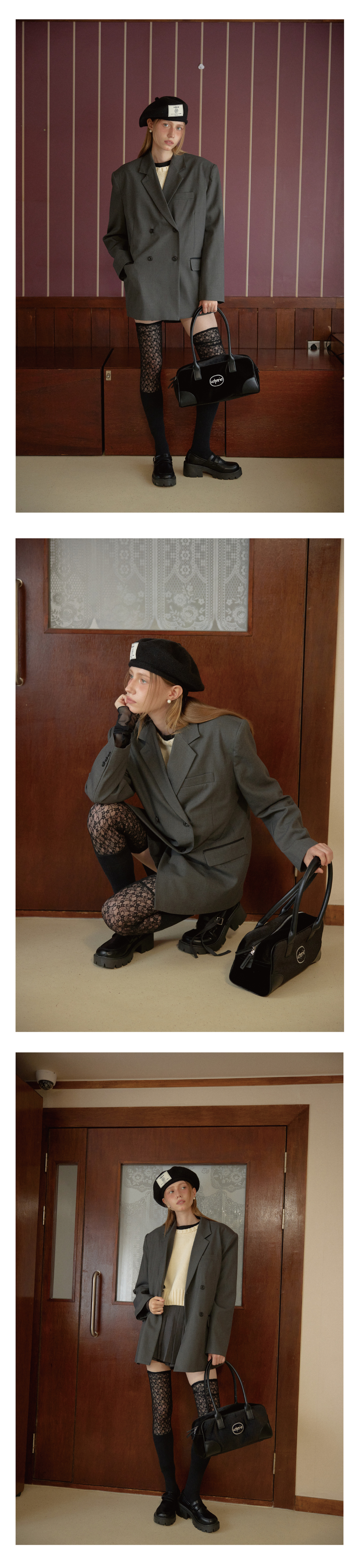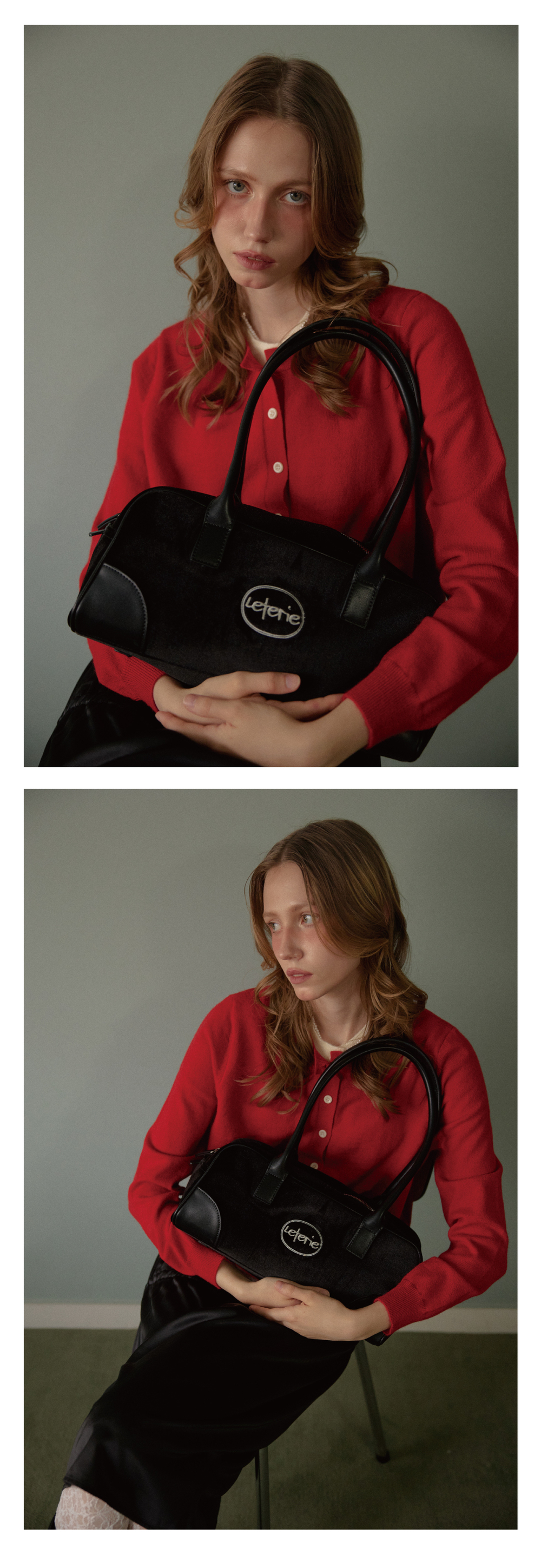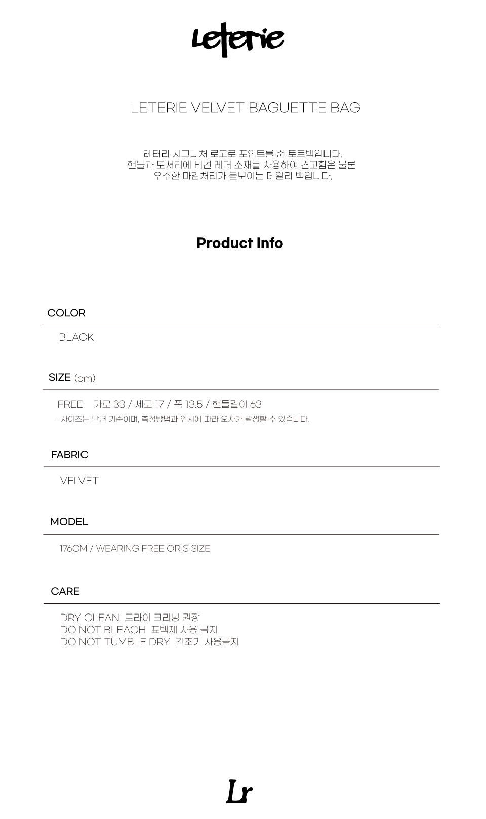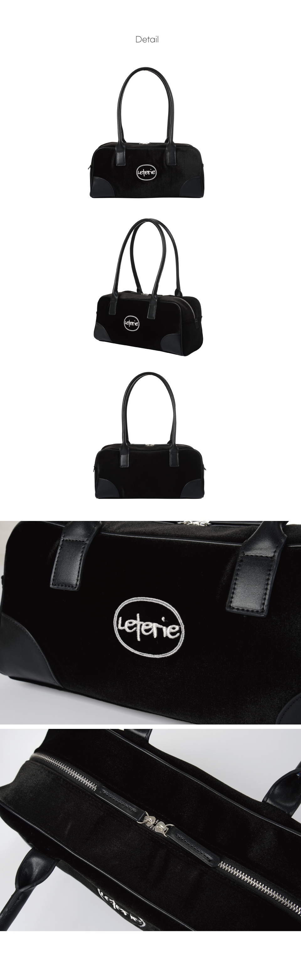 레터리 벨벳 바게트 백 블랙