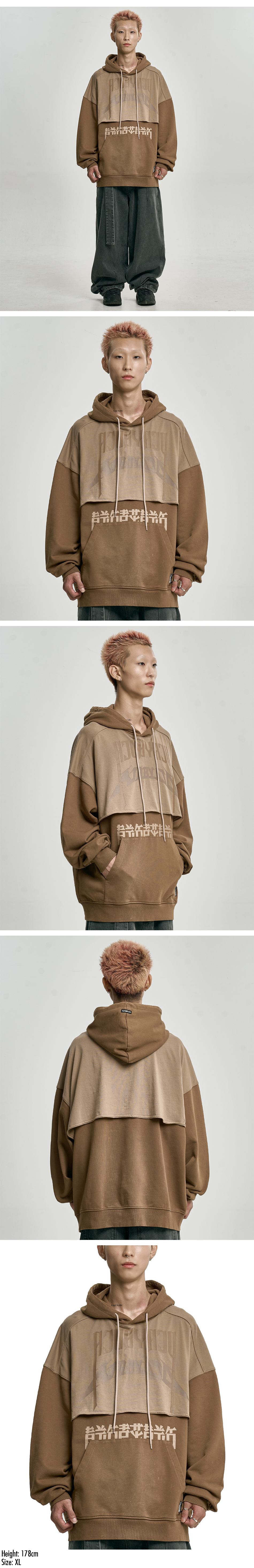 AJOBYAJO PBA Arch Logo Washed Layered Hoodie DUSTY BEIGE