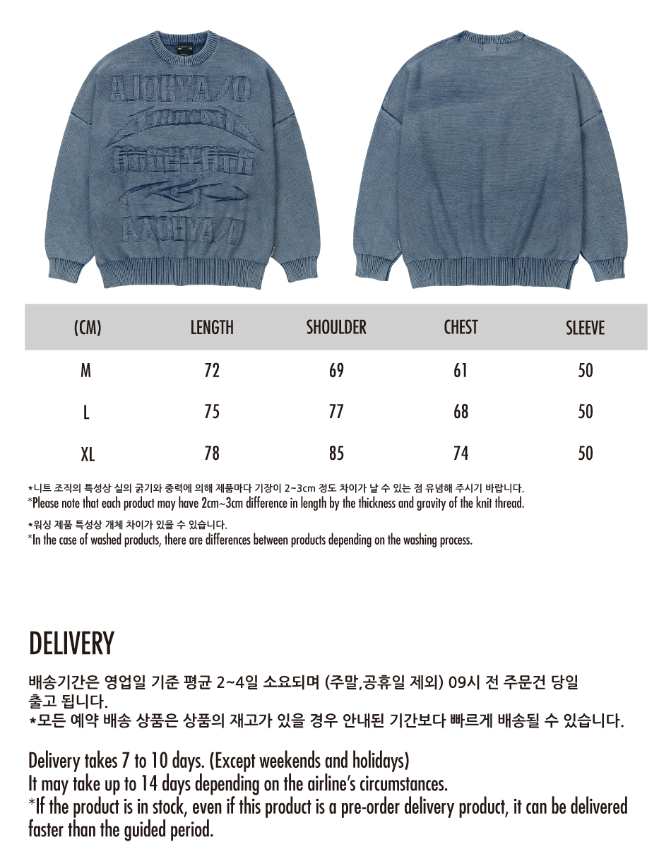 AJOBYAJO PBA Five AJO Logos Washed Sweater NAVY