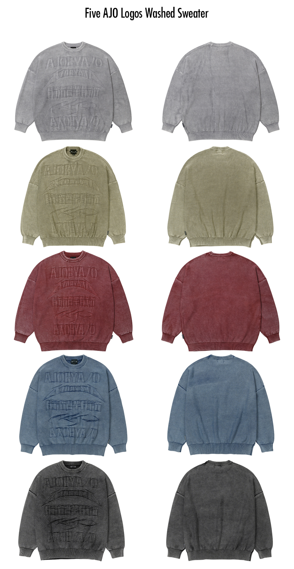 AJOBYAJO PBA Five AJO Logos Washed Sweater LIGHT GREY