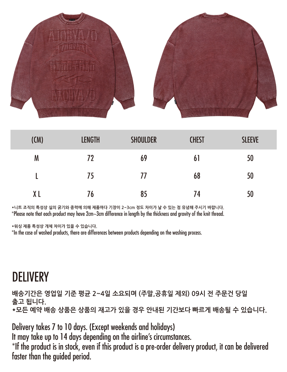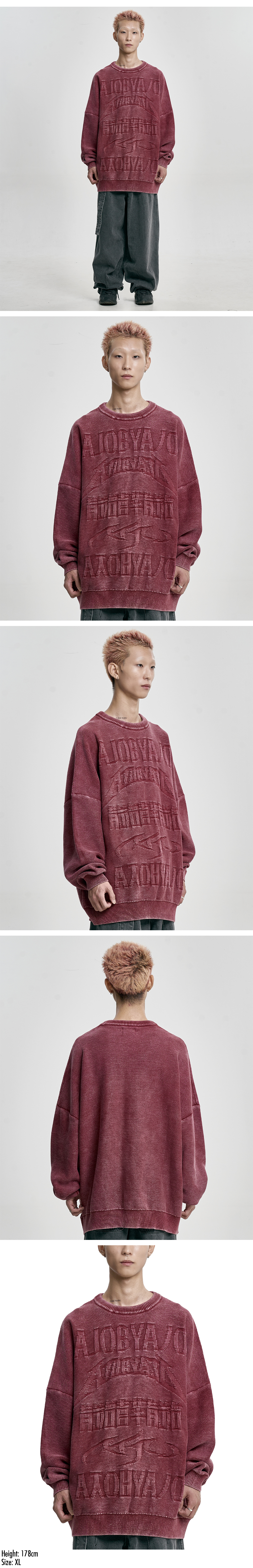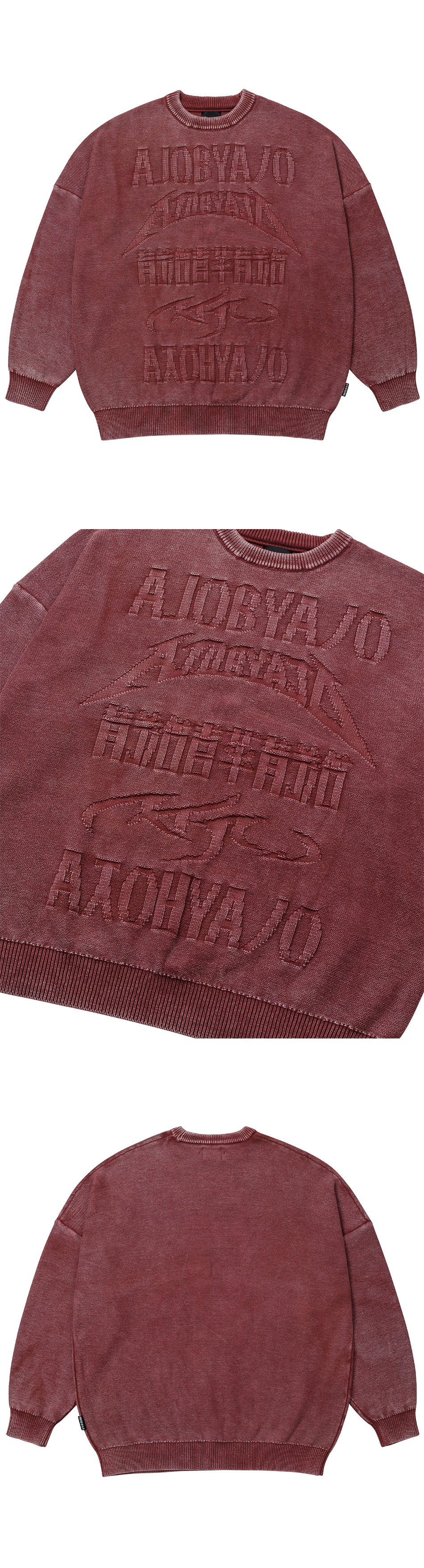 AJOBYAJO PBA Five AJO Logos Washed Sweater BURGUNDY