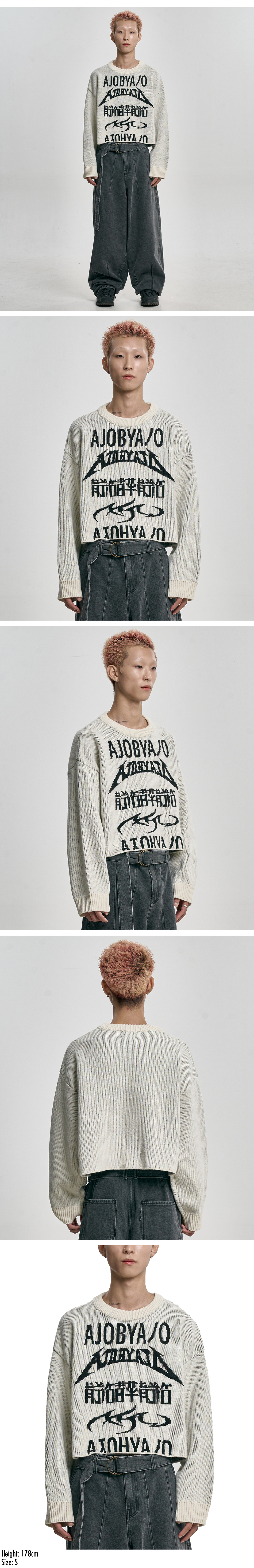 아조바이아조 PBA 토탈 로고 크롭 스웨터 아이보리