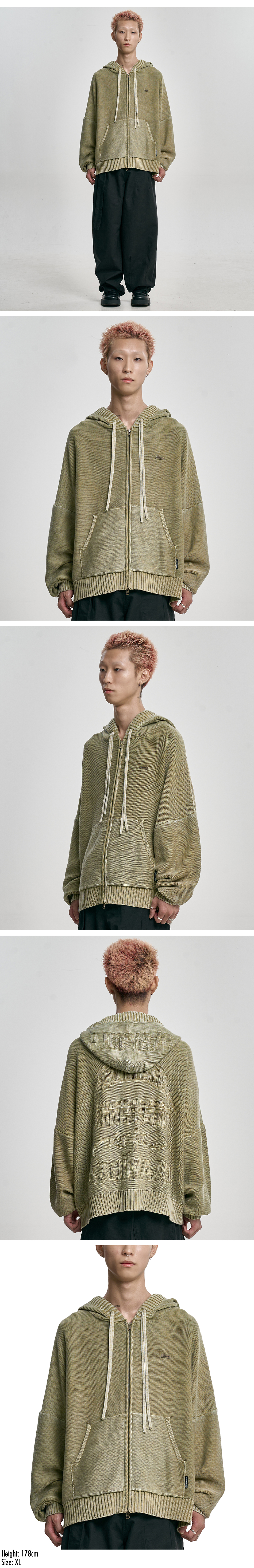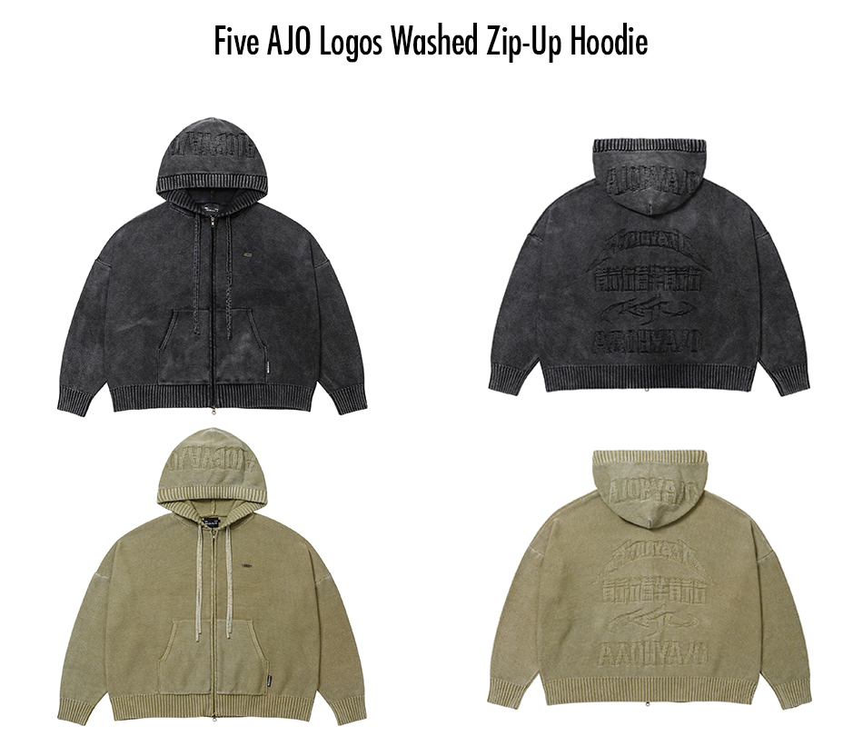 AJOBYAJO PBA Five AJO Logos Washed Zip-Up Hoodie LIGHT KHAKI