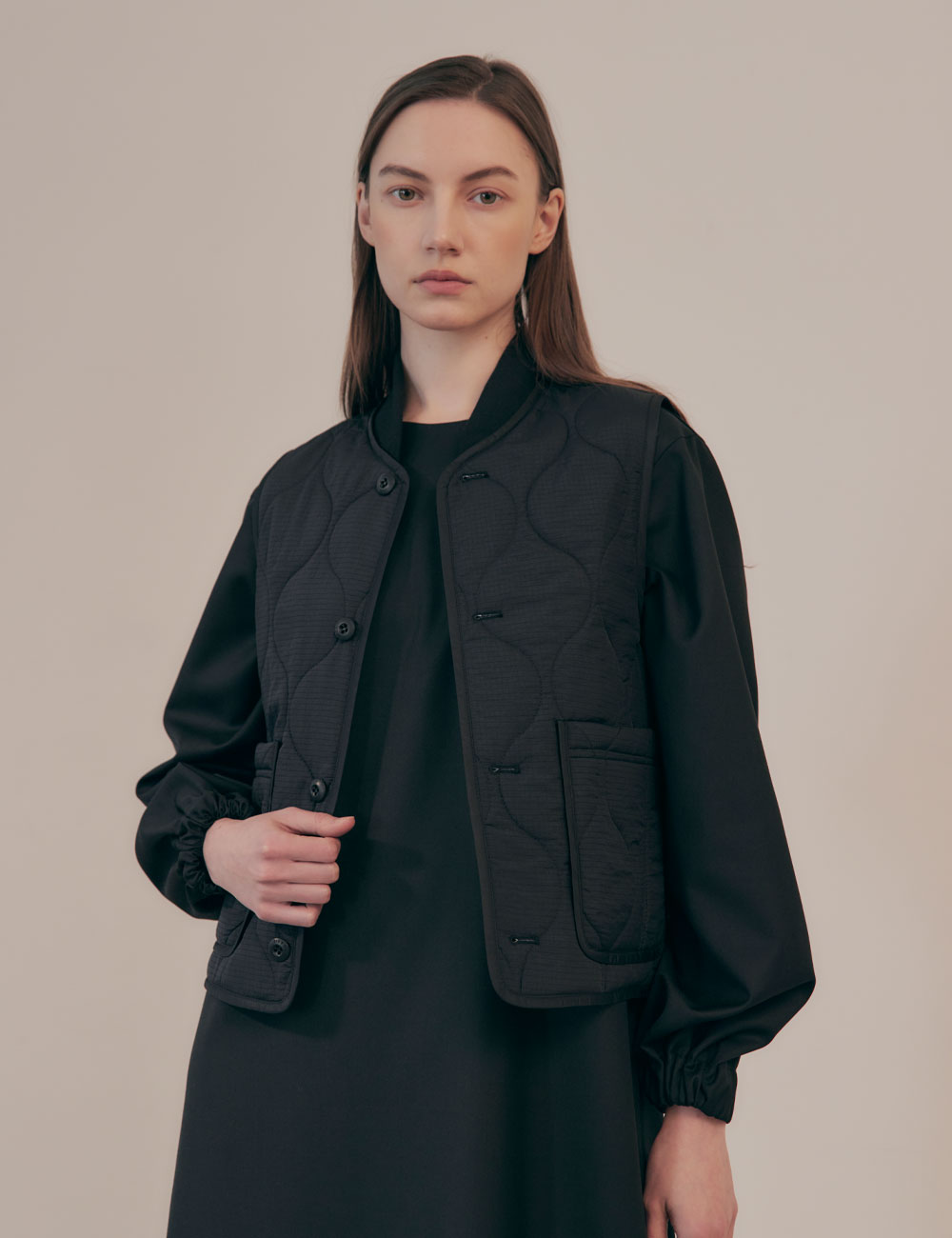 - 레귤러핏의 퀼팅베스트 - 3온스 충전재가 들어간 나일론 소재 - 간절기 시즌 레이어링 룩을 연출할 수 있는 활용도 높은 아이템 - 트렌드에 구애받지 않는 디자인