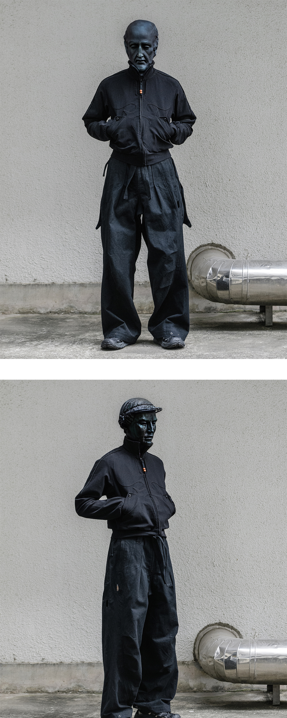 중국의 전통 예술, '변검(変面師)'을 모티브로 한 디자인, 지안 예의 HNMN 탑입니다. - 전/후면 변검극 가면에서 영감 받은 패치 디자인 - 약간 타이트하나, 우수한 신축성으로 높은 활동성 - 시그니처인 우드 소재의 구슬 지퍼 패스너 - 입체적인 소매 패턴 및 소매 썸홀 디테일 - 약간 크롭한 기장 * HNMN 팬츠 블랙 컬러와 셋업으로 착용 가능