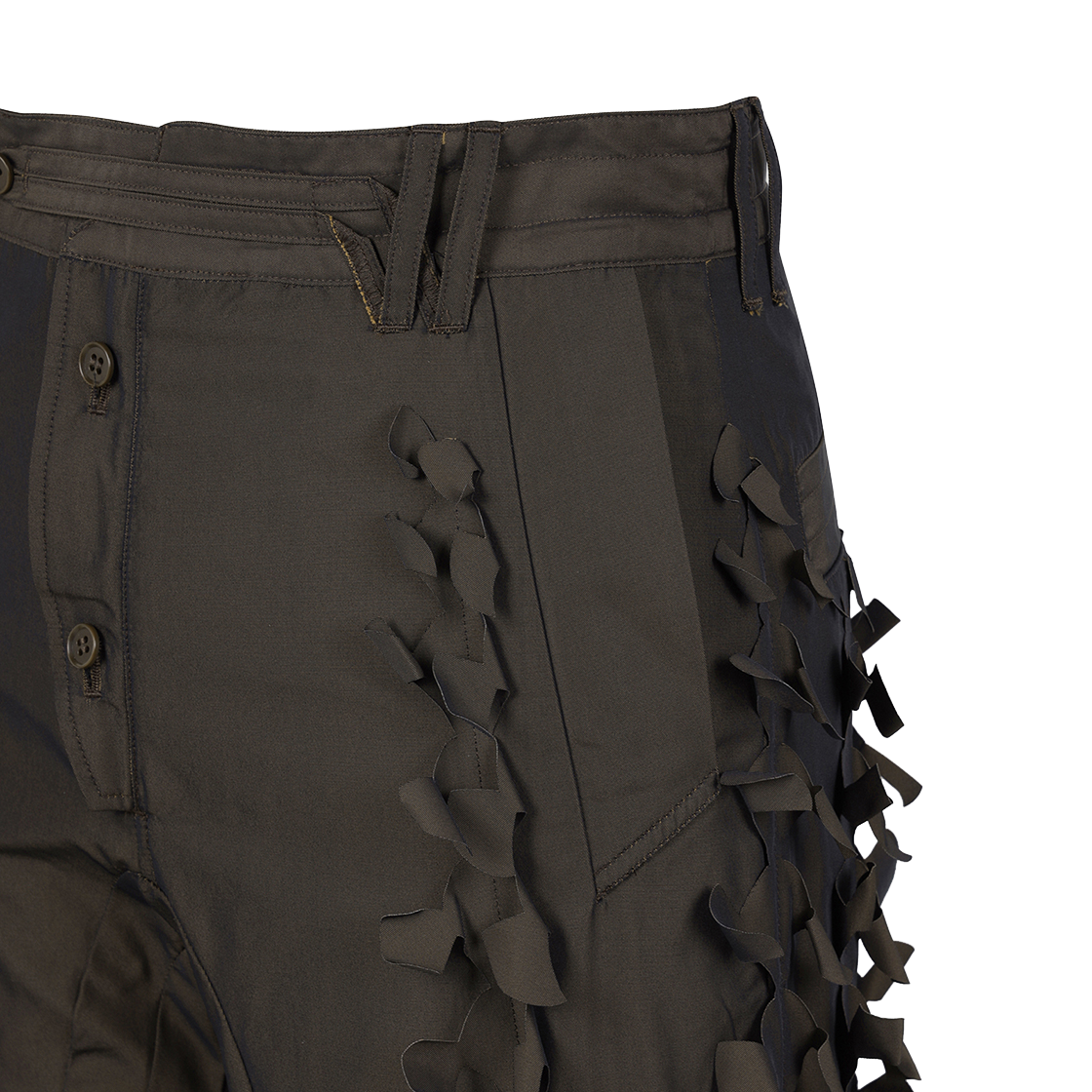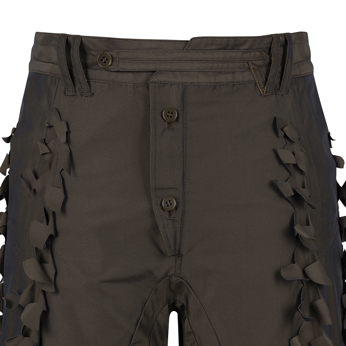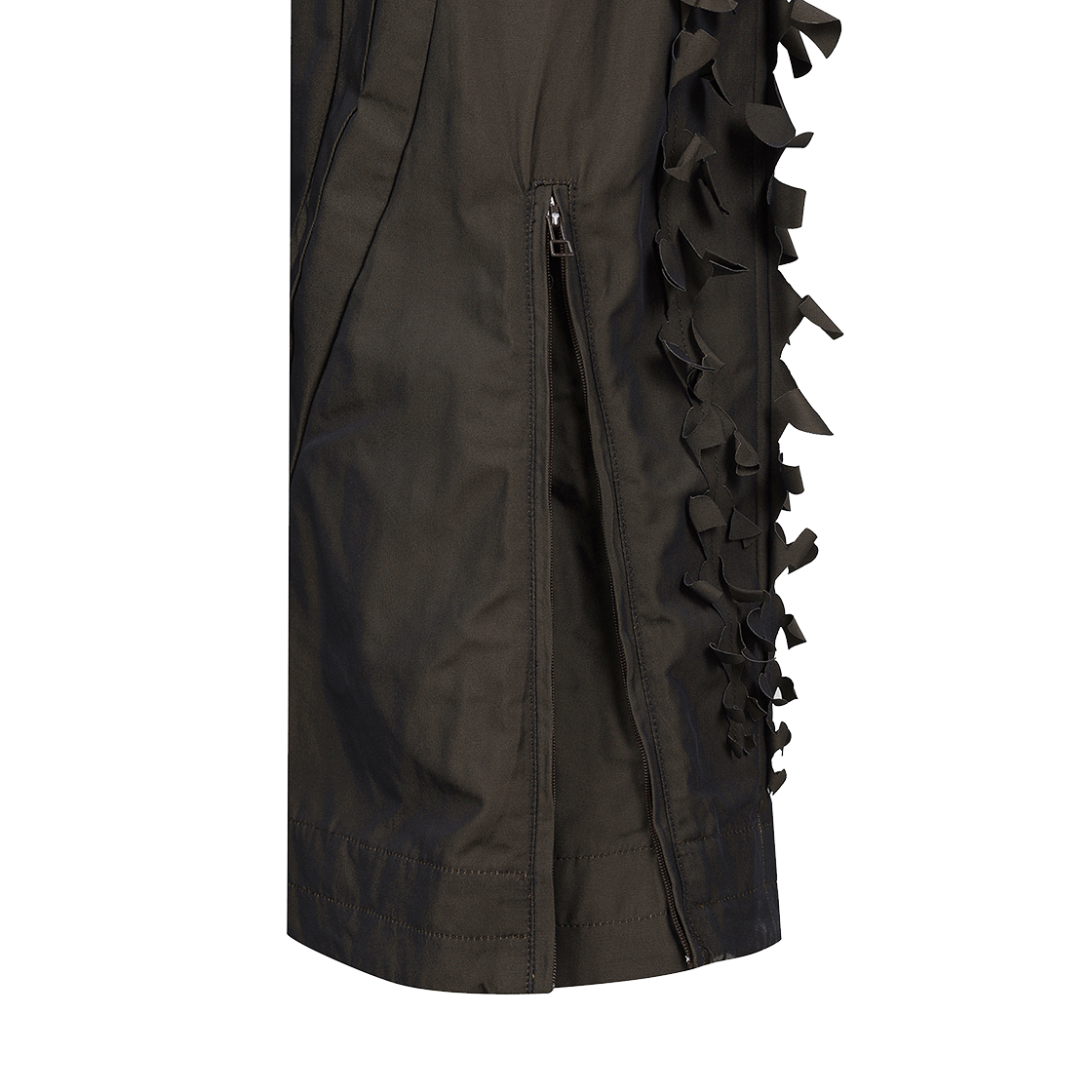 용을 형상화한 입체적인 디자인이 매력적인 지안 예의 DRGN 스킨 팬츠입니다. - 용의 비늘을 연상시키는 측면 패치 디테일 - 독특한 디자인의 벨트 루프 - 전면 버튼 클로징 - 밑단 지퍼로 실루엣 조절 가능 * DRGN 스킨 자켓 브라운 컬러와 셋업으로 착용 가능