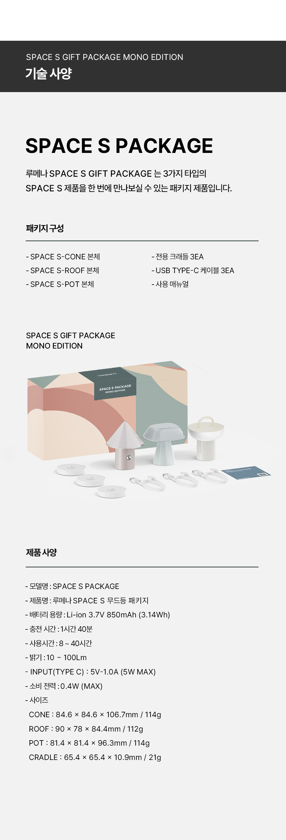 루메나 SPACE S 무드등 패키지 모노 에디션