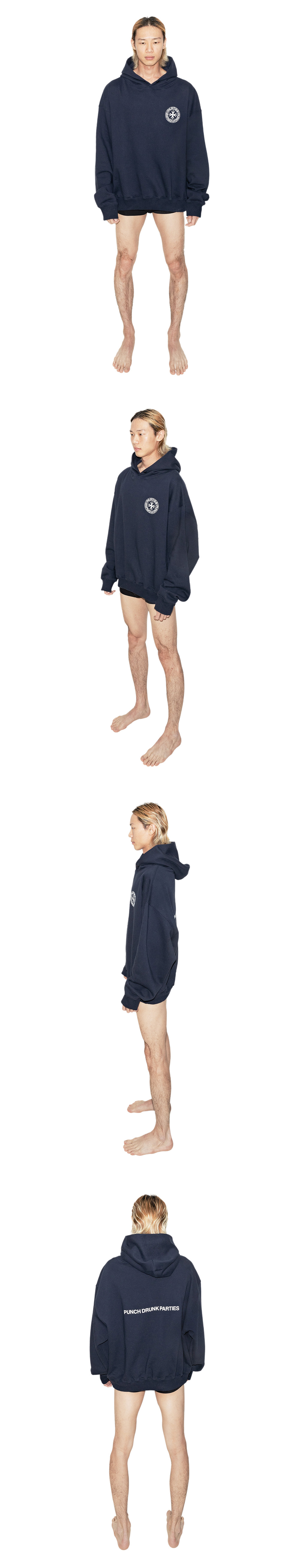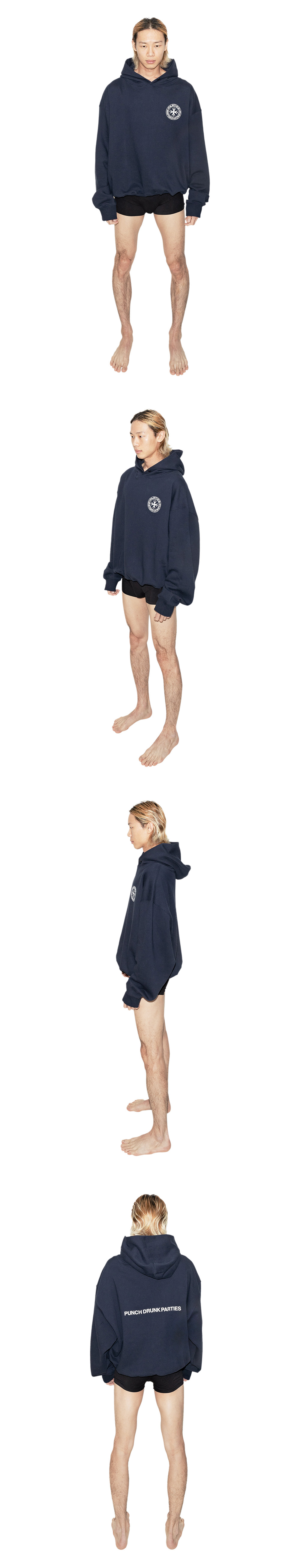 펀치 드렁크 파티즈 서클 로고 오버사이즈 후드 네이비