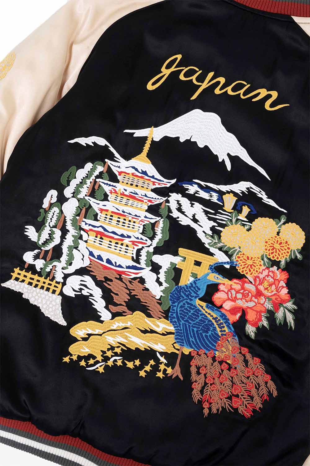 Houston Japan 51391 Reversible Souvenir Jacket (Japan) - Black 리버시블 스카잔입니다. 앞판/뒷판 모두 하이퀄러티로 제작된 명작입니다. 각각 성 풍경의 자수와 마이키 자수가 들어가 있습니다. 뒷면(뒤집어입은면)은 다이아몬드 퀼팅 사양으로 고급스러운 형태입니다. HOUSTON의 감성으로 해석된 스카쟌을 꼭 즐겨보시길 바랍니다. *마이키: 마이코는 일본에서 게이샤가 되기 전 수습과정에 있는 예비 게이샤를 뜻합니다. * Upper : Rayon 100% * Lining : Polyester 100% * Lib : Acrylic 100% * 빛에 의한 제품의 색감 차이가 존재 할 수 있습니다. * Made in China
