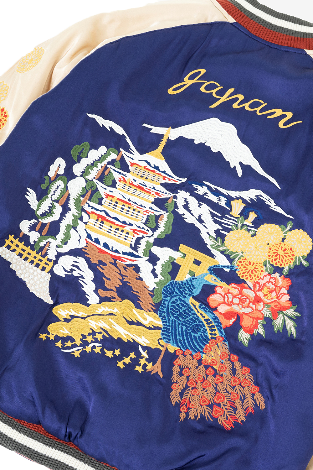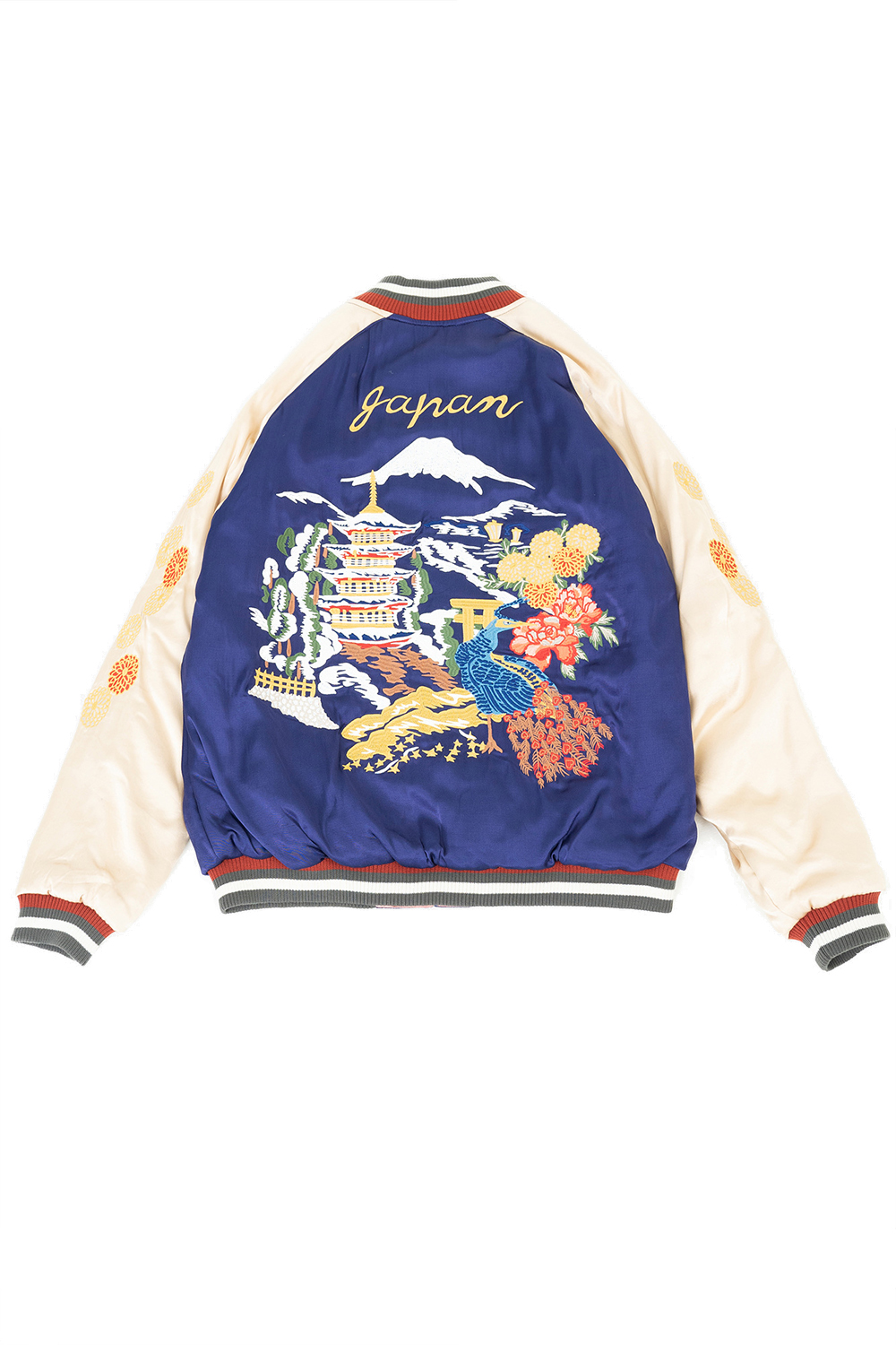 Houston Japan 51391 Reversible Souvenir Jacket (Japan) - Navy 리버시블 스카잔입니다. 앞판/뒷판 모두 하이퀄러티로 제작된 명작입니다. 각각 성 풍경의 자수와 마이키 자수가 들어가 있습니다. 뒷면(뒤집어입은면)은 다이아몬드 퀼팅 사양으로 고급스러운 형태입니다. HOUSTON의 감성으로 해석된 스카쟌을 꼭 즐겨보시길 바랍니다. *마이키: 마이코는 일본에서 게이샤가 되기 전 수습과정에 있는 예비 게이샤를 뜻합니다. * Upper : Rayon 100% * Lining : Polyester 100% * Lib : Acrylic 100% * 빛에 의한 제품의 색감 차이가 존재 할 수 있습니다. * Made in China