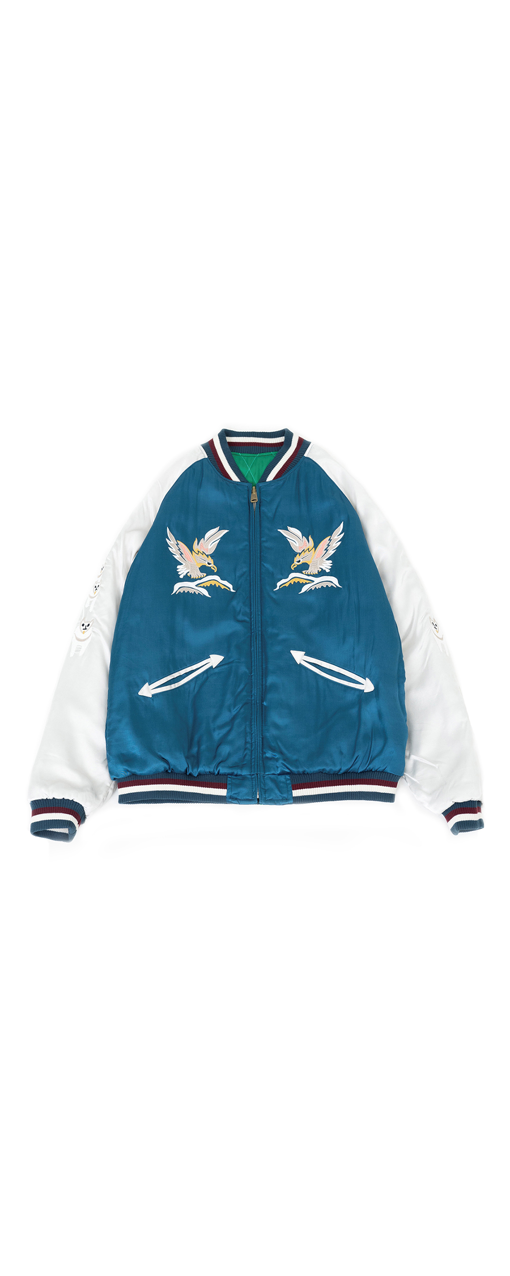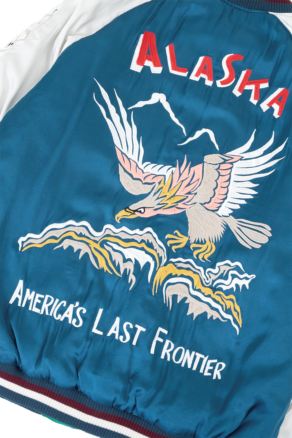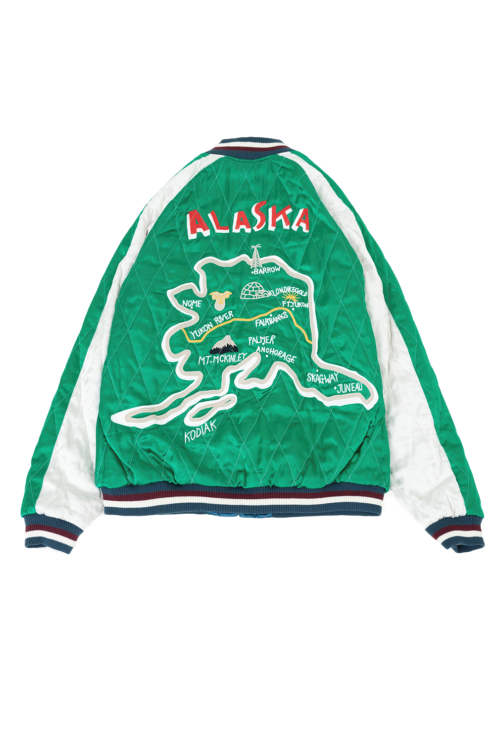 Houston Japan 51390 Reversible Souvenir Jacket (Alaska) - Blue 리버시블 스카잔입니다. 앞판/뒷판 모두 하이퀄러티로 제작된 명작입니다. 양면 모두 알래스카 모티브로 상이한 자수가 놓여져 있습니다. 뒷면(뒤집어입은면)은 다이아몬드 퀼팅 사양으로 고급스러운 형태입니다. HOUSTON의 감성으로 해석된 스카쟌을 꼭 즐겨보시길 바랍니다. * Upper : Rayon 100% * Lining : Polyester 100% * Lib : Acrylic 100% * 빛에 의한 제품의 색감 차이가 존재 할 수 있습니다. * Made in China