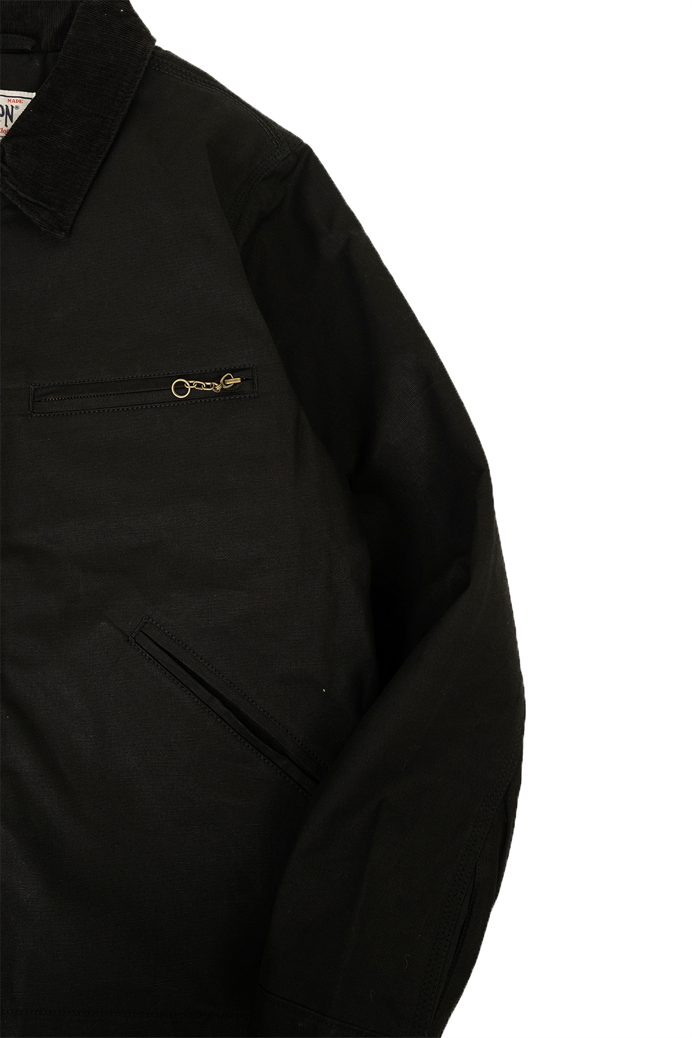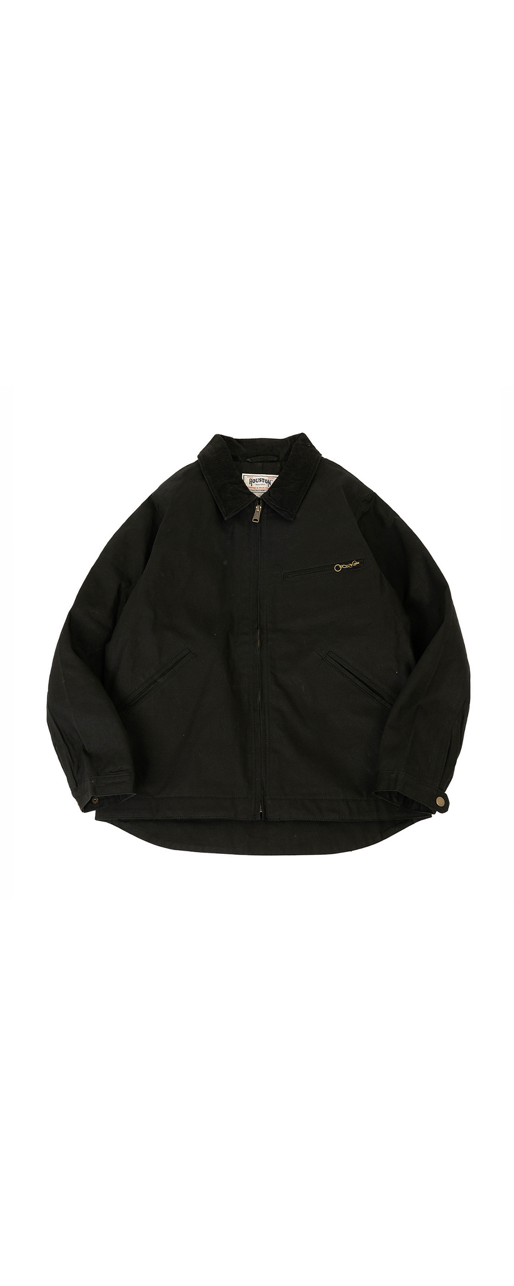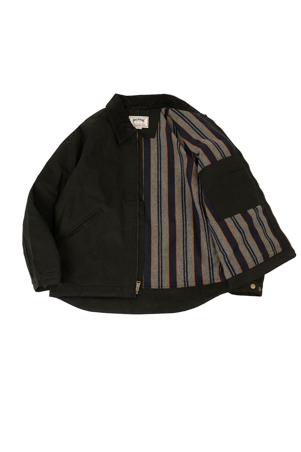 Houston Japan 51402 Duck Zip Work Jacket - Black 덕캔버스를 ZIP 워크자켓입니다. 라이닝은 오리지날 패브릭으로 울혼합 블랭킷을 사용했습니다. PU코팅을 입혀 데드스톡과 같은 딱딱함과 단단한 탄력이 있습니다. 왼팔 부분에 유틸리티 포켓을 디자인하였고, 밑단과 소매는 넥라인과 같은 리브 소재를 사용하였습니다. 처음에는 매우 딱딱하고 강고하지만 착용이나 세탁을 반복하면서 서서히 부드러워지고 착용자의 생활패턴에 따른 갱년변화를 즐길 수 있는 아이템입니다. * Upper : Cotton 100% * Lining : Polyester 55% / Wool 17% / Acrylic 14% / Cotton 10% ETC 3% * 빛에 의한 제품의 색감 차이가 존재 할 수 있습니다. * Made in India