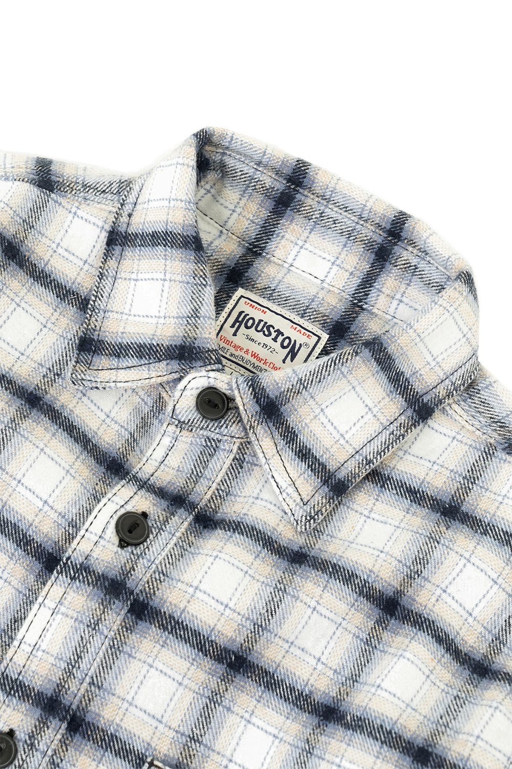Houston Japan 41143 Flannel Check Shirt - Navy 봉제공장에서 폐기되는 각종 섬유 재단물 등을 모아 방적한 재활용 원단을 사용한 플란넬 셔츠입니다. 디테일은 비에라 셔츠와 같으며, 트리플스티치 재봉입니다. 유연함을 목적으로한 세척가공이 들갔으며 표면의 미세한 기모감이 특징입니다. 무엇보다도 가격대비 가성비가 뛰어난 셔츠입니다. * Polyester 50% / Cotton 30% / Rayon 12% / Acrylic 4% / Nylon 4% * 빛에 의한 제품의 색감 차이가 존재 할 수 있습니다. * Made in India