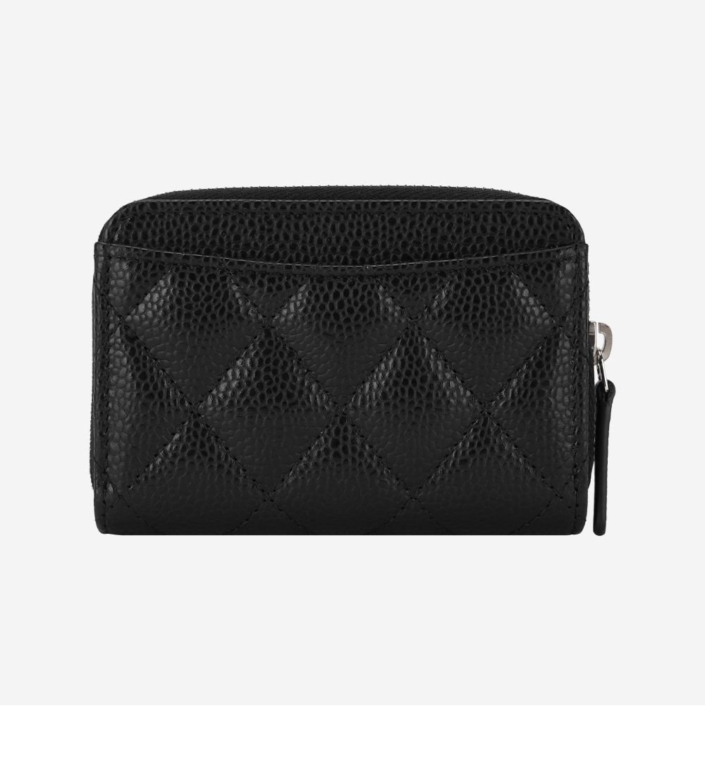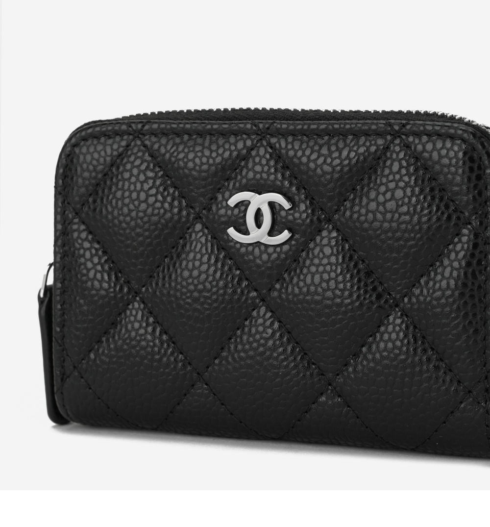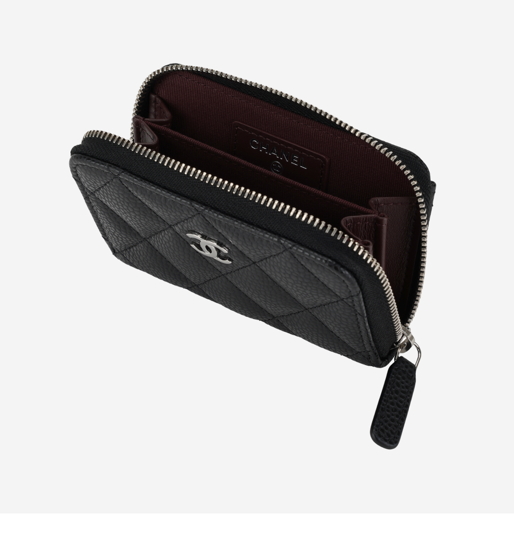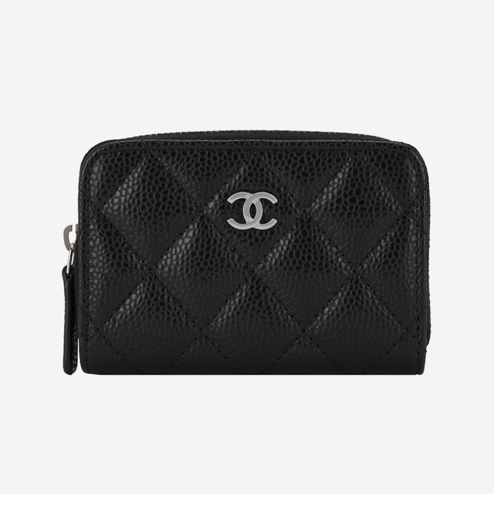 샤넬 클래식 지퍼 동전 지갑 그레인드 카프스킨 & 실버 메탈 블랙