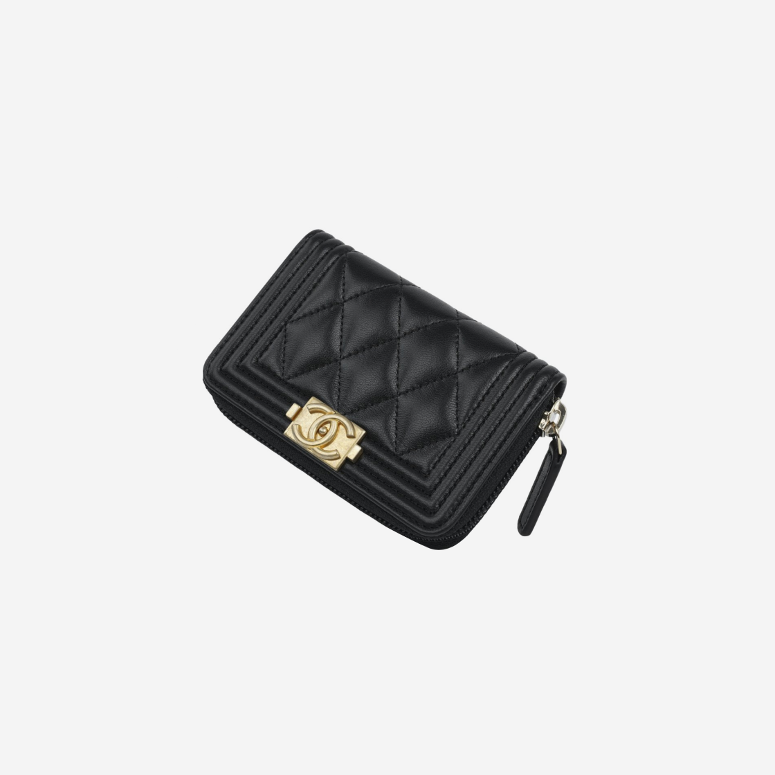 샤넬 보이 샤넬 지퍼 동전 지갑 램스킨 & 골드 메탈 블랙