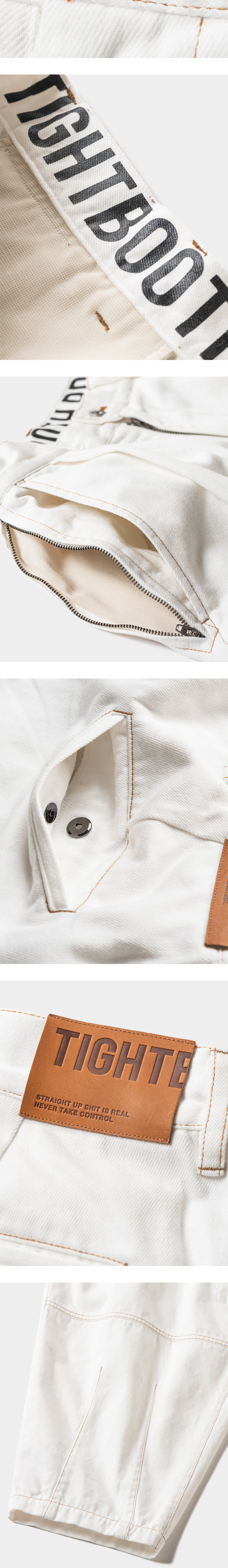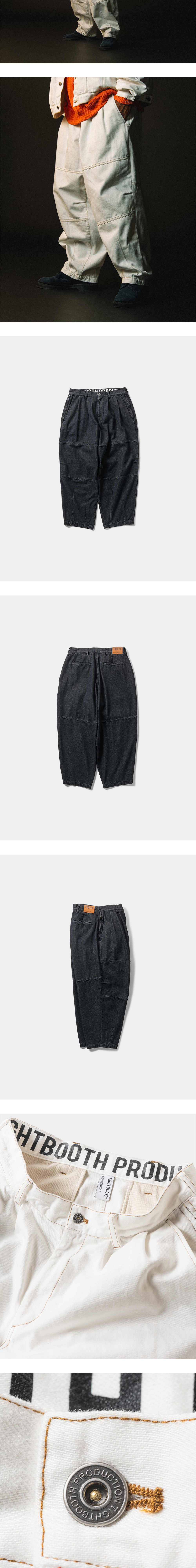 입체적인 실루엣의 벌룬 팬츠 디자인에 디테일을 더한 타이트부스의 데님 벌룬 팬츠입니다. - 클래식한 벌룬 팬츠 디자인 - 와이드하고 입체적인 무릎 패턴 - 로고 각인 버튼 디테일 - 허리 밴드 내부 로고 프린팅 - 양측 2개의 포켓 및 2개의 지퍼 포켓 - 후면 2개의 포켓 - 후면 로고 가죽 패치 - 라벨 로고 데님 자켓과 셋업으로 착용 가능 * 모델샷과 상세샷 일부는 동일 모델의 화이트 컬러입니다.