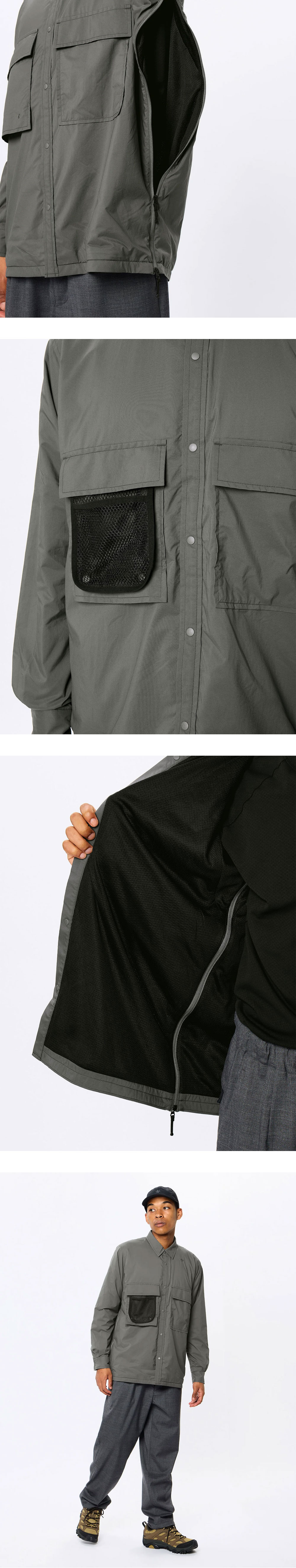 각 면의 밀도가 다른 이중 직조 구조를 가진 Pertex Equilibrium 소재로 만든 골드윈의 블랙 컬러 셔츠입니다. 등산이나 윈드셸과 같은 야외 활동에 이상적입니다. - 내구성과 발수성이 뛰어난 소재 - 부드럽고 매우 가벼운 안감 - 답답함과 과열을 방지할 만큼 적절한 보온성과 통기성을 갖춘 친환경 소재인 옥타(Octa) 소재 사용 - 박스형 실루엣이며 - 입고 벗기 편리한 앞면 스냅 단추 디테일로 - 어깨와 팔의 가동성을 향상시키는 피벗 슬리브와 소매 바닥의 거싯 패턴이 있는 3차원 디자인 - 필요에 따라 꺼낼 수 있는 오른쪽 가슴 메시 주머니 디테일 *모델 착용 컬러 : Shadow Gray