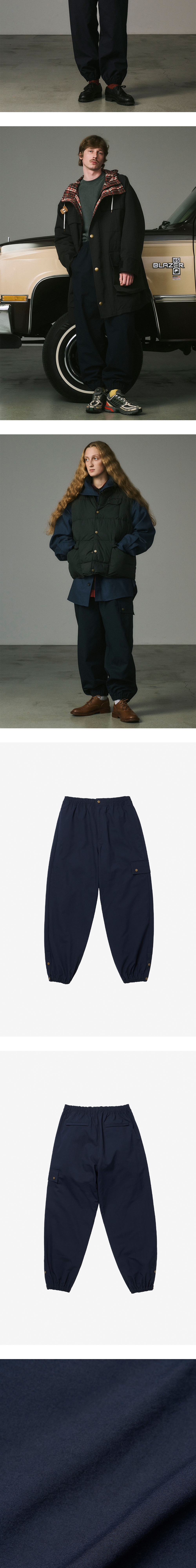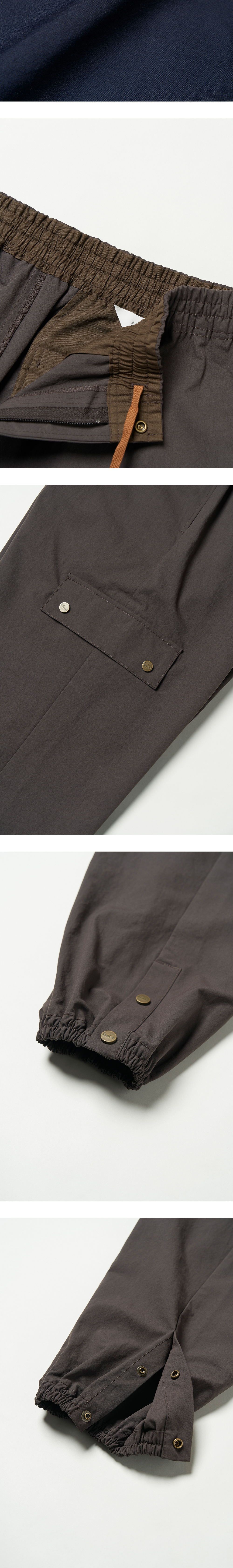 세련된 실루엣과 소재에 밴딩과 포켓 디테일로 편리함을 더한 울리치의 치노 카고 팬츠입니다. - 단단하면서도 신축성 있고 부드러운 폴리에스터 소재 - 허리 밴딩 및 스트링으로 편안한 착용감 - 좌측 플랩 포켓 - 후면 웰트 포켓 - 밑단 스냅 버튼 및 밴딩 디테일 - 치노 필드 셔츠와 셋업으로 착용 가능